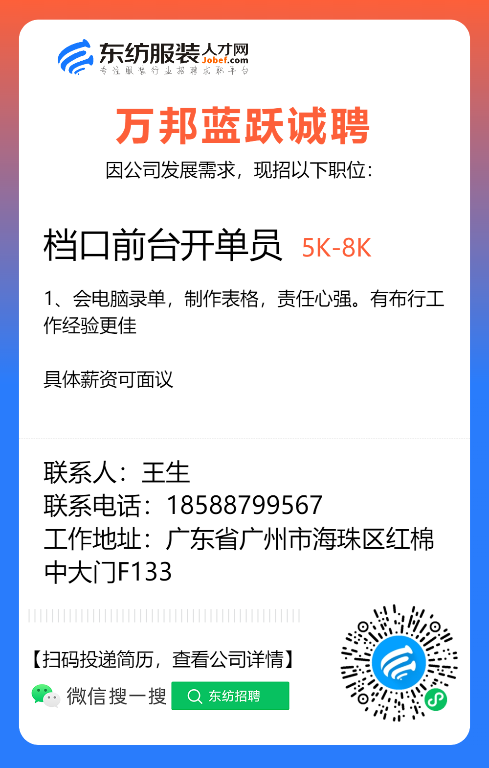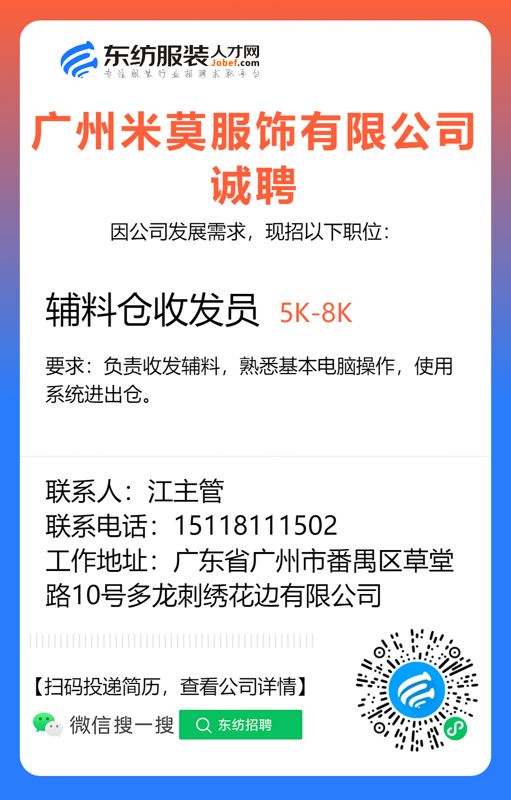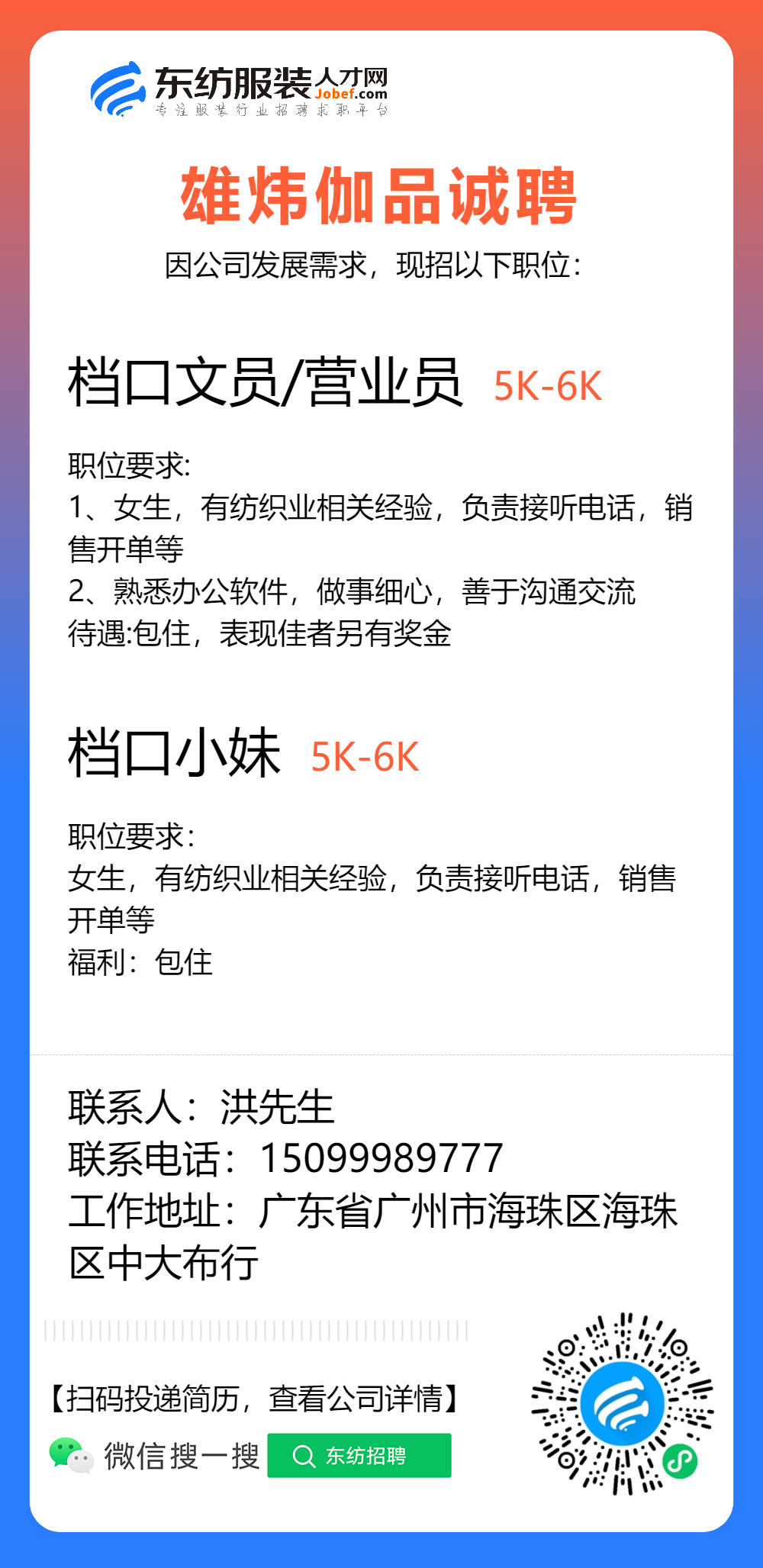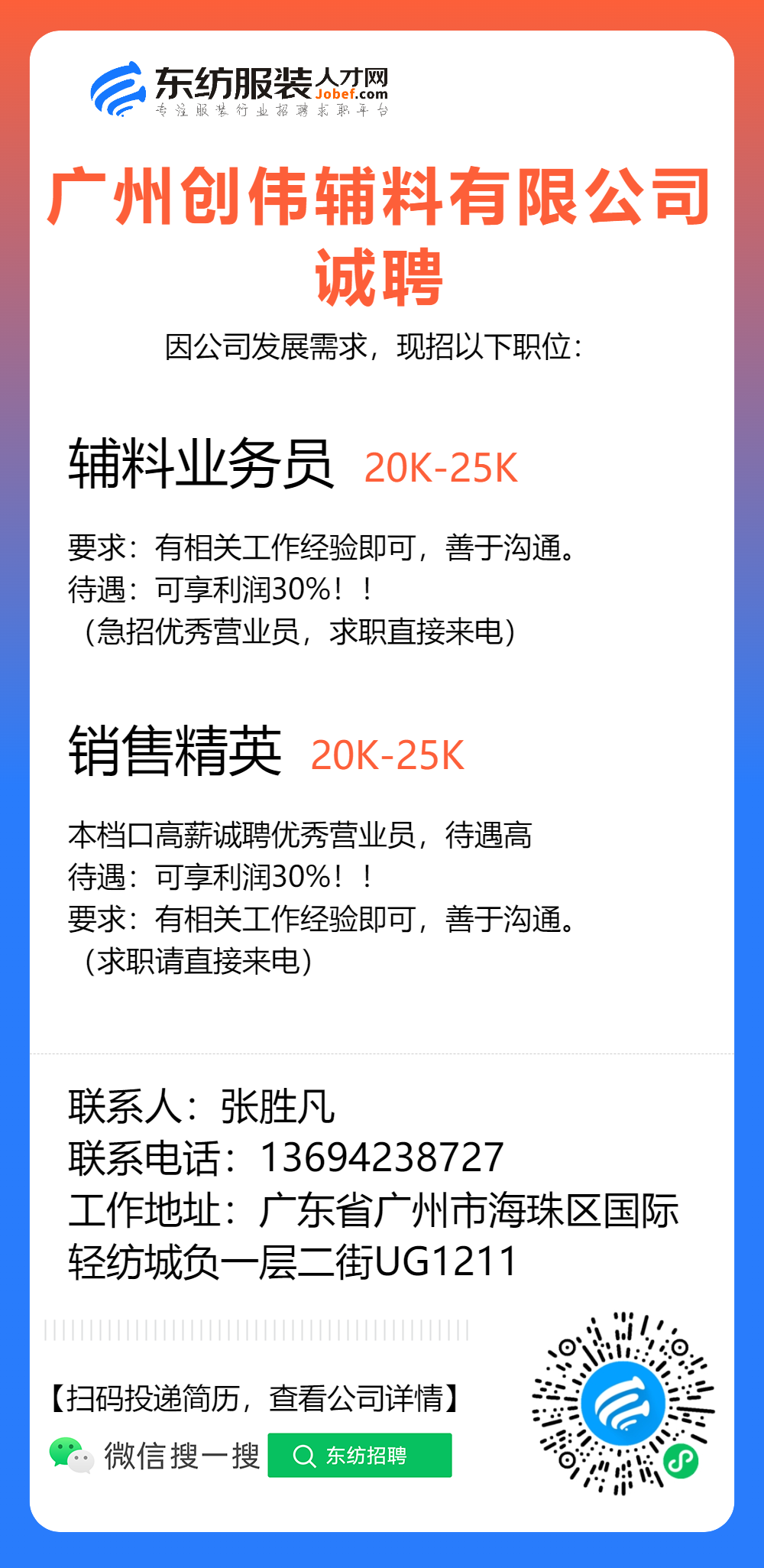服装招聘·布行类丨1. 25号,验布员、布行销售、质检员……