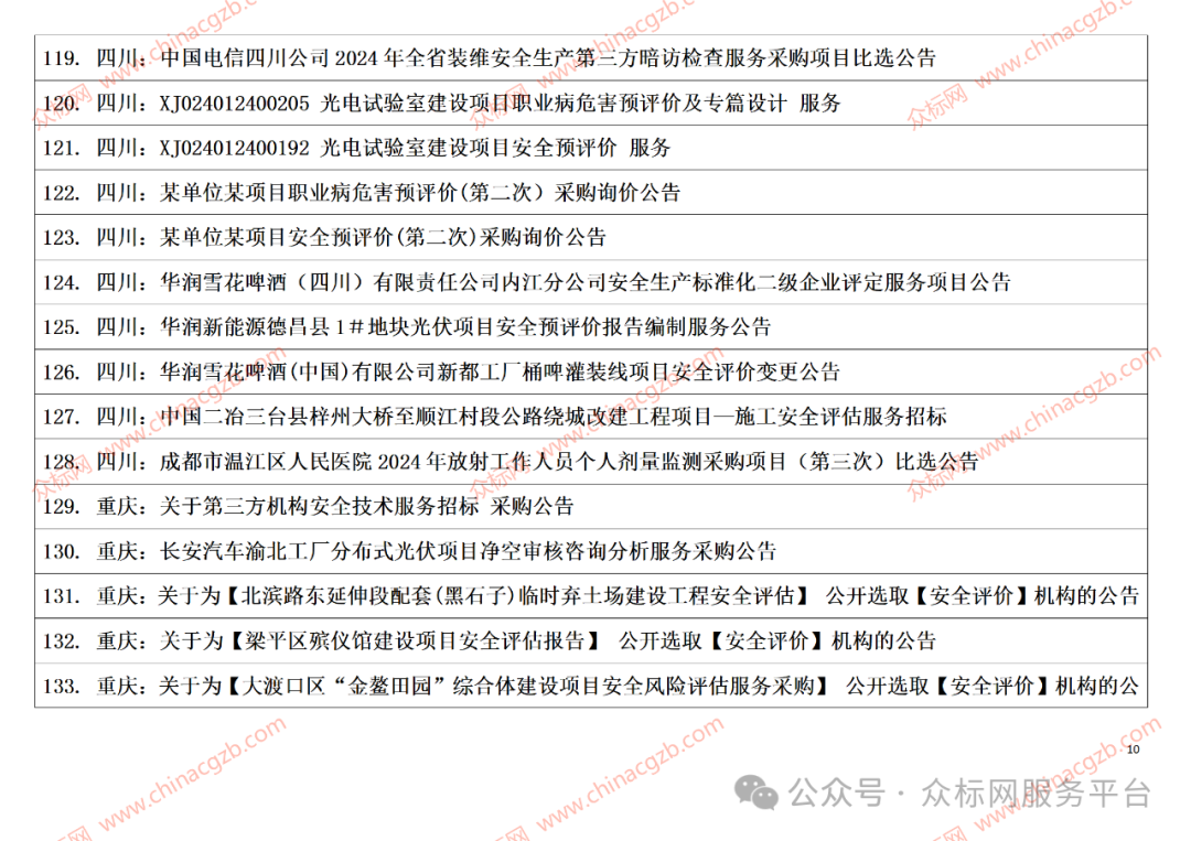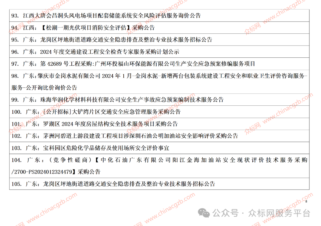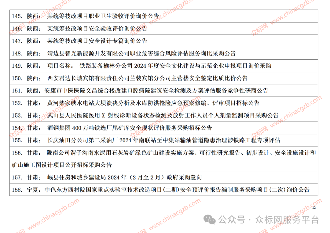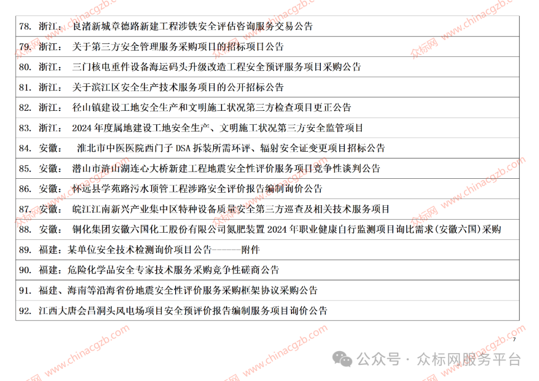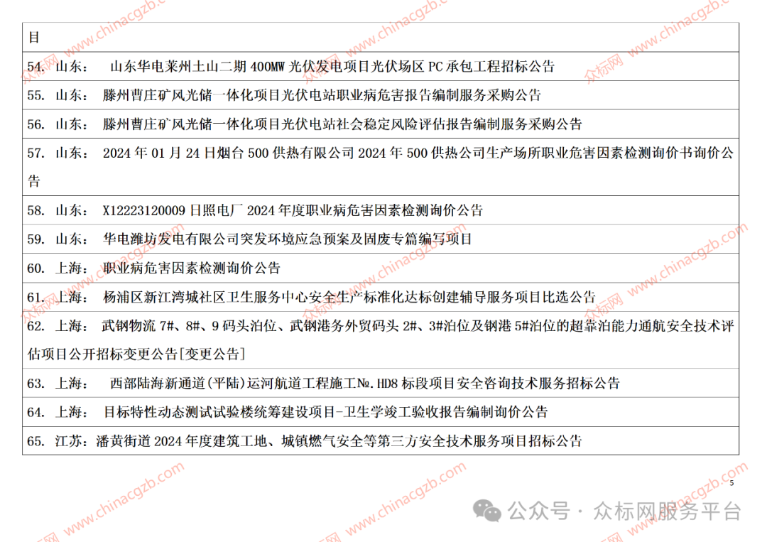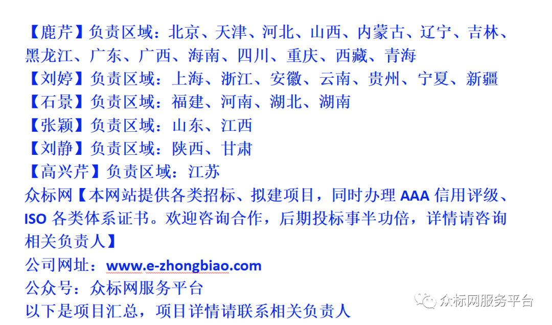 注:众标网是发布全国招标项目信息的服务平台,以上内容是项目标题汇总;成为网站会员以后可以了解到项目内容、业主联系方式及更多详情,具体请联系相关负责人