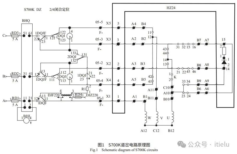 (5)DBQ的作用是防止电路因缺相烧毁电机。三相交流电出现断相,DBQ失去直流输出,使BHJ断电释放,用BHJ接点切断1DQJ的自闭电路,停止三相供电,BHJ的型号为JWXC-1700。