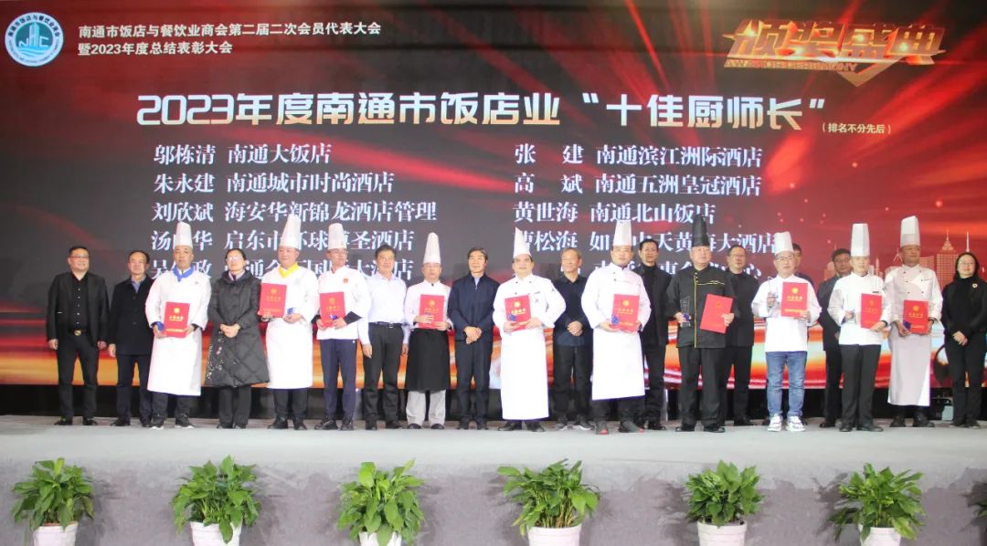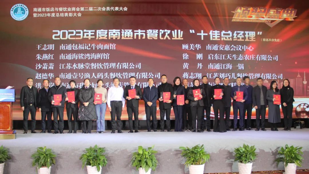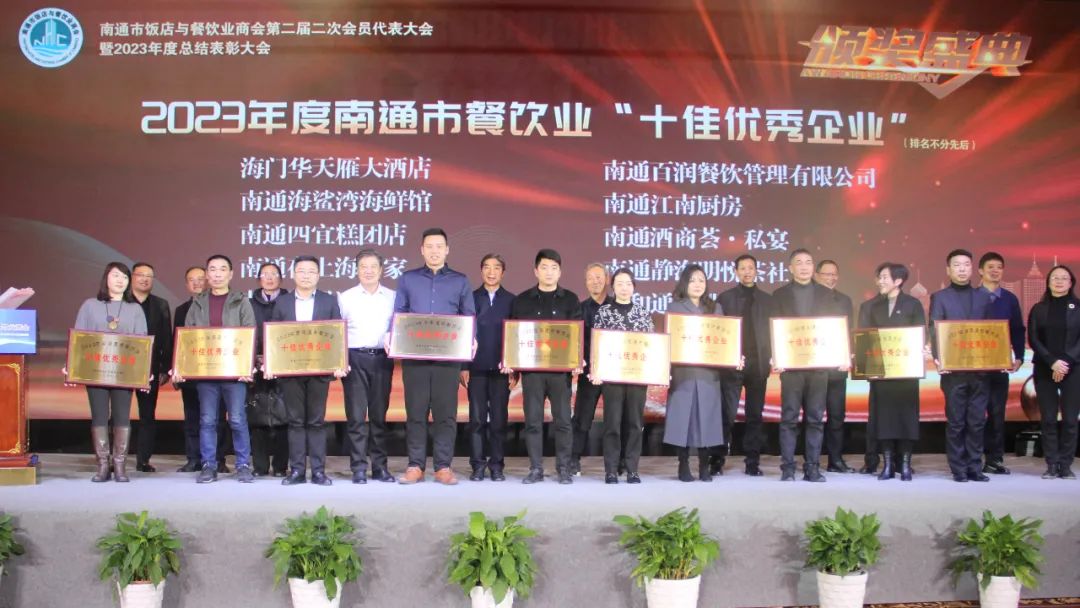 ■ 南通市饭店与餐饮业商会会长胡总作工作报告商会会长胡忠向大会作工作报告,从抢抓发展先机,加速重振餐饮产业;壮大会员队伍,引领行业发展;弘扬传统文化,菜品不断创新;加强校企合作,培养餐饮人才;加强行业规范,确保餐饮安全;打造餐饮品牌,展现南通形象;弘扬张謇精神,关注公益事业;坚持党建引领,促进餐饮发展等方面总结回顾了过去一年的工作。2023年度南通市饭店与餐饮业商会被评为江苏省“四好”商会,被省工商联餐饮商会、省餐饮行业协会以及省烹饪协会分别评为“先进商会”“优秀社团组织”和“优秀组织奖”,连续9年举办“爱心驿站”,连续17年举办“爱心年夜饭”捐赠活动。多家会员企业被评为国家四钻、三钻级酒店,绿色饭店,金茉莉餐厅,入选美团必吃榜。会员企业扩大产业,走多元化发展之路,餐饮业态发生新的变化,向专业养殖、农副产品物流配送等方向发展,餐饮连锁店、品牌店、特色店、风味店等为行业注入了新活力。