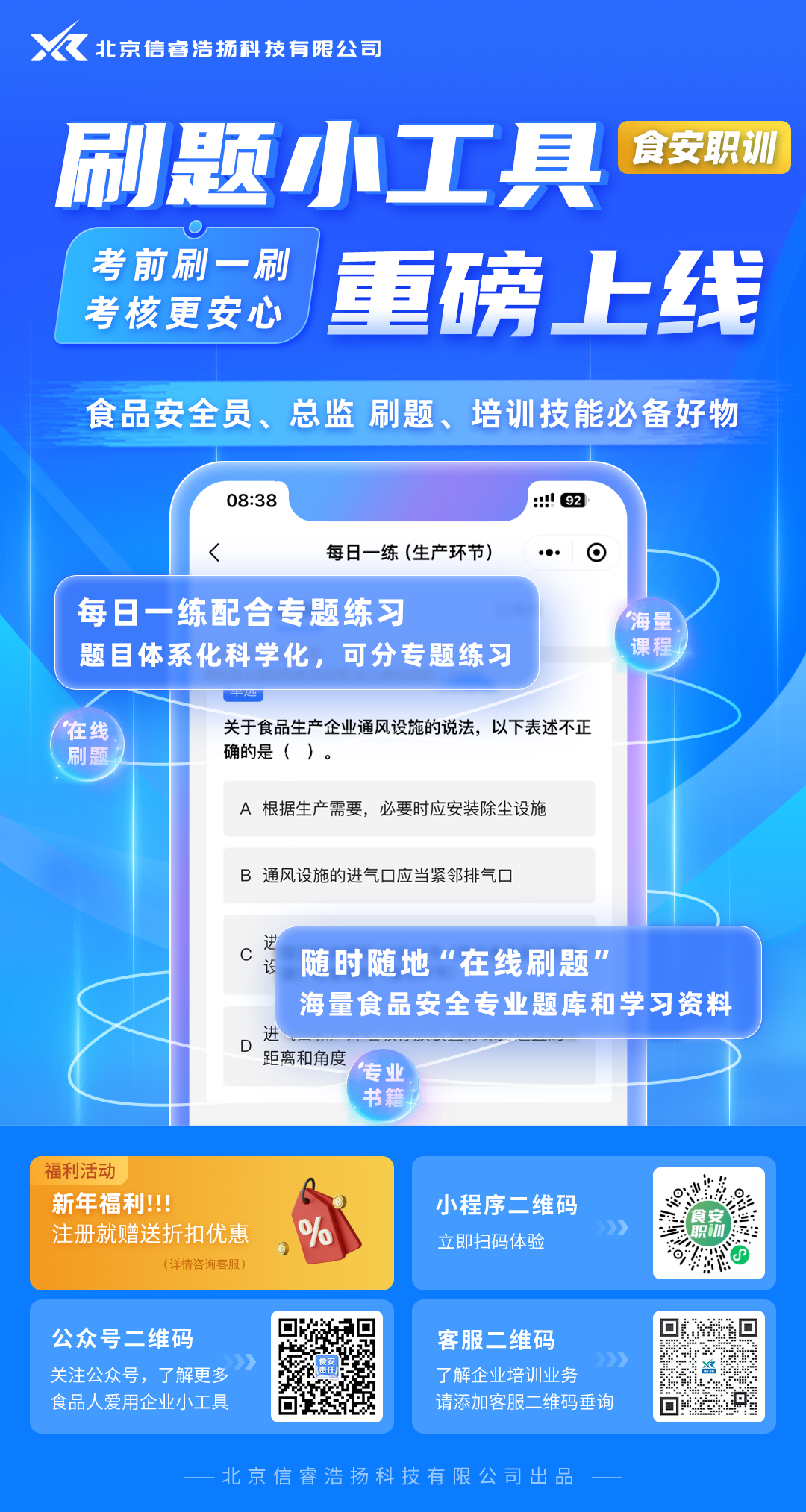 为帮助食品从业人员解决这一难题,“食安职训”重磅上线,海量食品安全专业题库和学习资料免费学,题目体系化科学化分配,可分专题练习。每日练一练,并进行模拟考试闯关,食品安全从业人员专业水平提升无难事,轻松应对监管考核。除了海量免费题库,小程序还搭载了丰富的专业课程辅助学习,随时随地在线学习,专业知识抽考无忧。