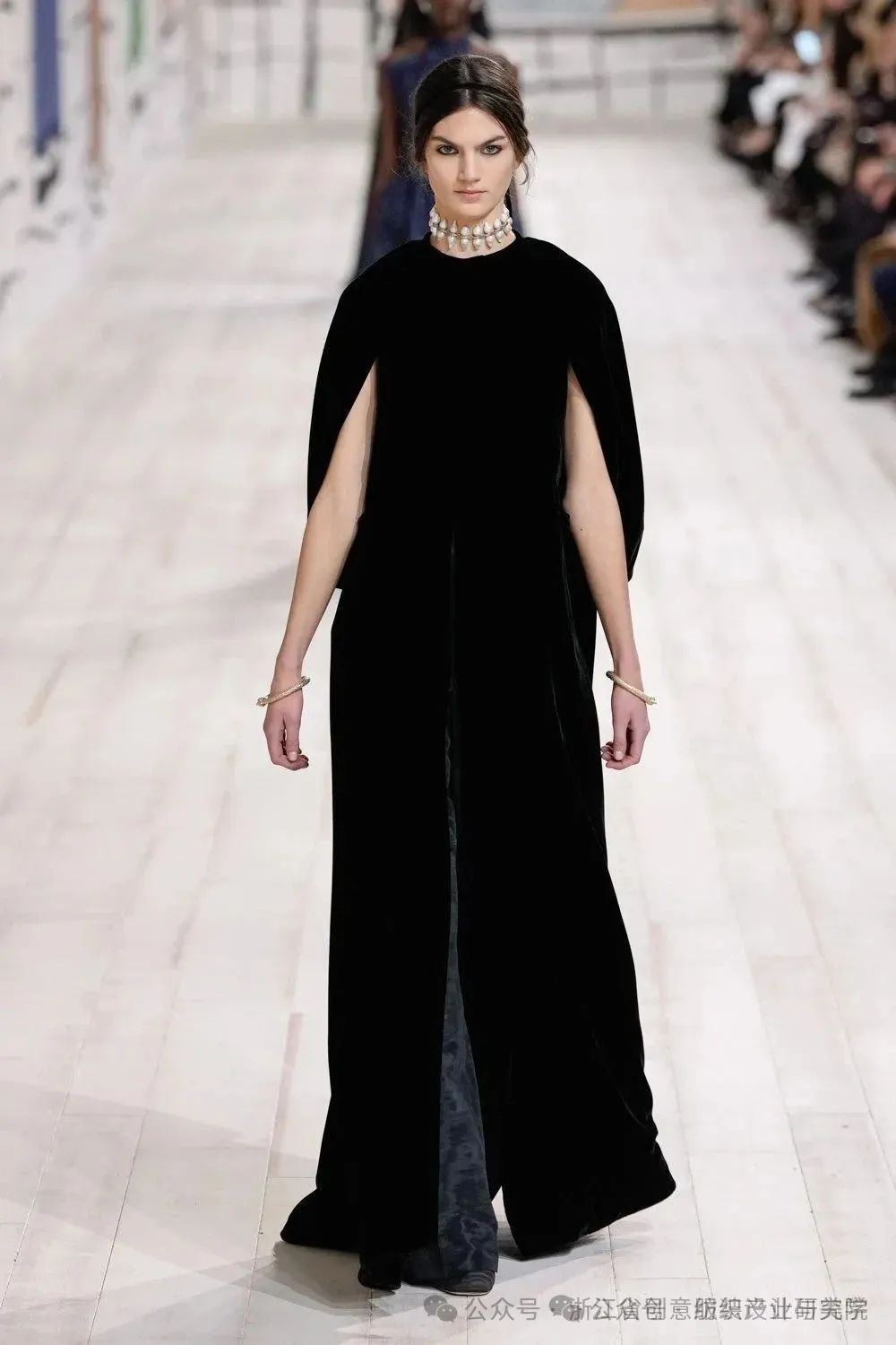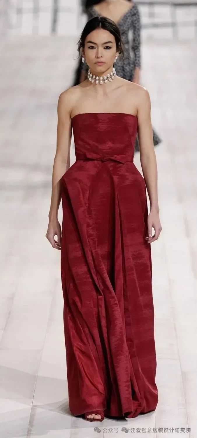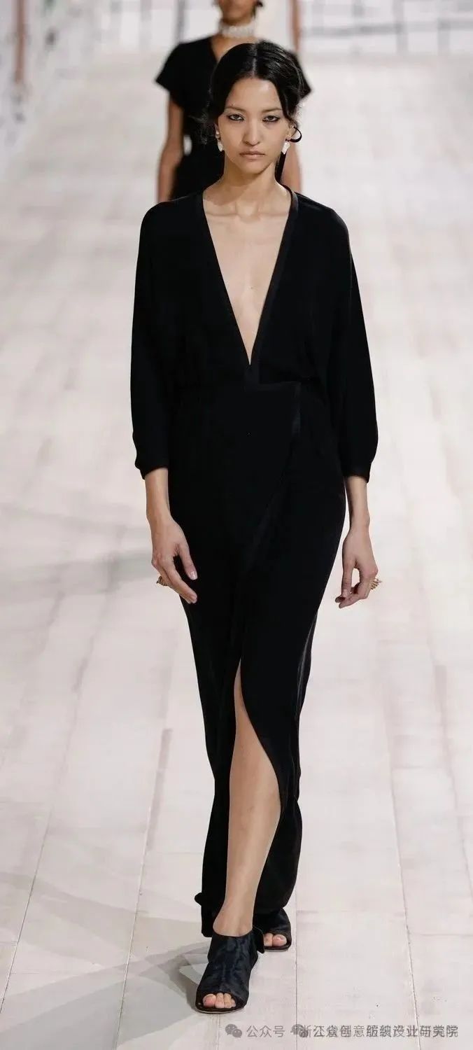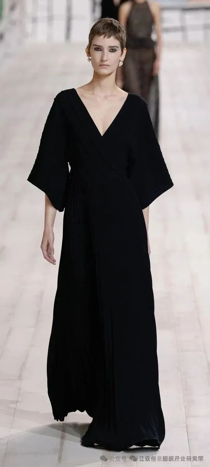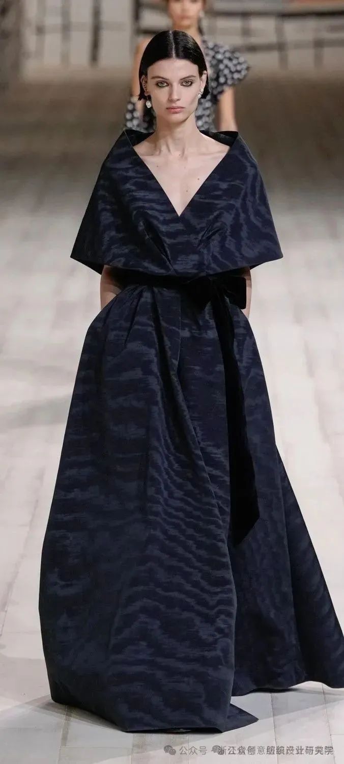 最后出场的是高定礼服系列,也许是受到大环境经济下行或战争的影响,很多品牌现在高定礼服的设计和工艺细节也变得日渐简洁,迪奥也不例外。