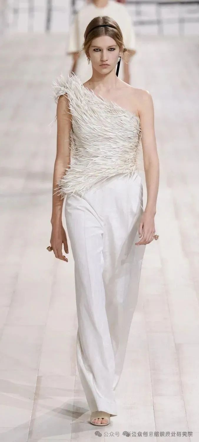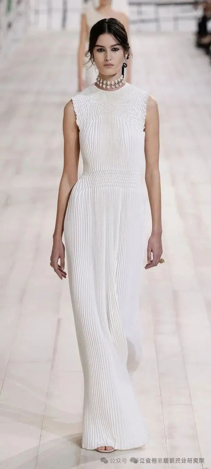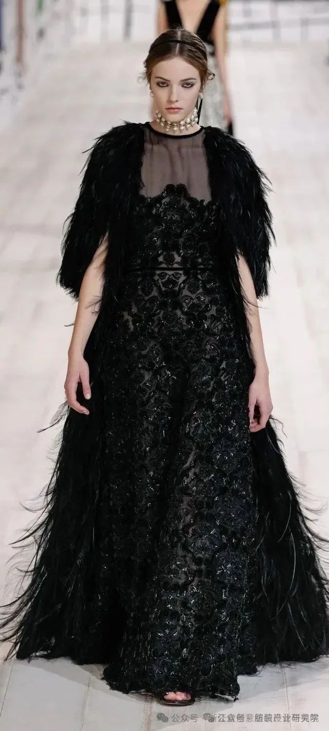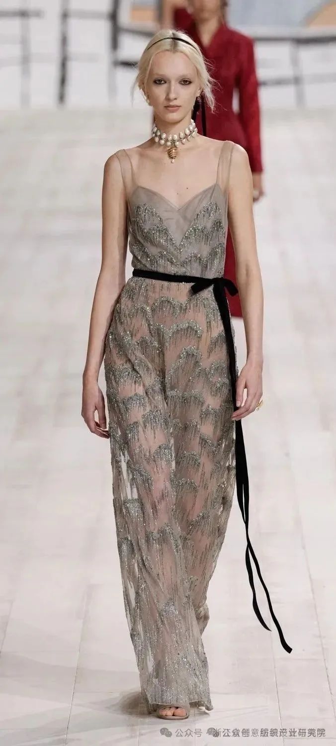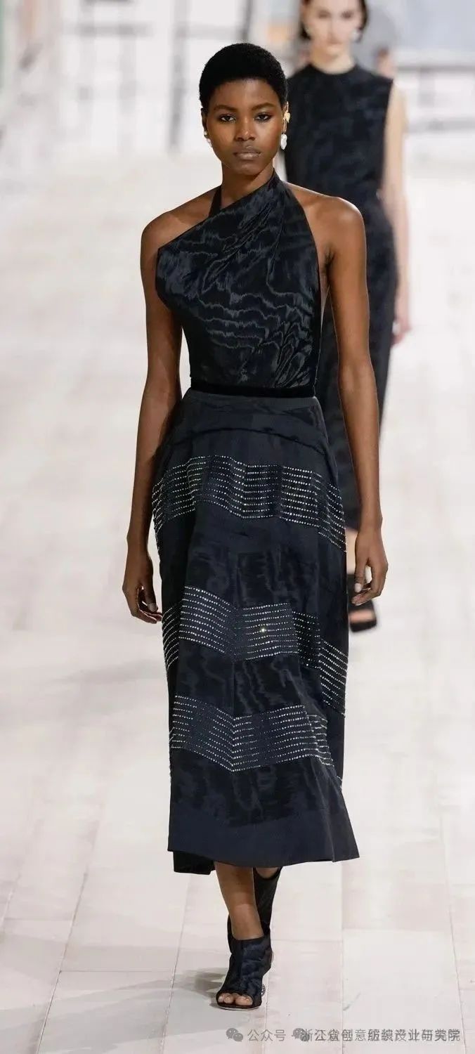 最后出场的是高定礼服系列,也许是受到大环境经济下行或战争的影响,很多品牌现在高定礼服的设计和工艺细节也变得日渐简洁,迪奥也不例外。