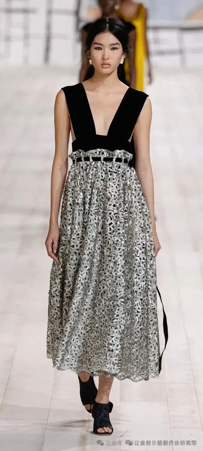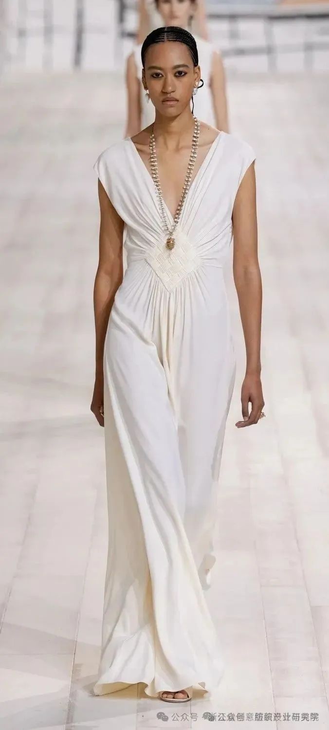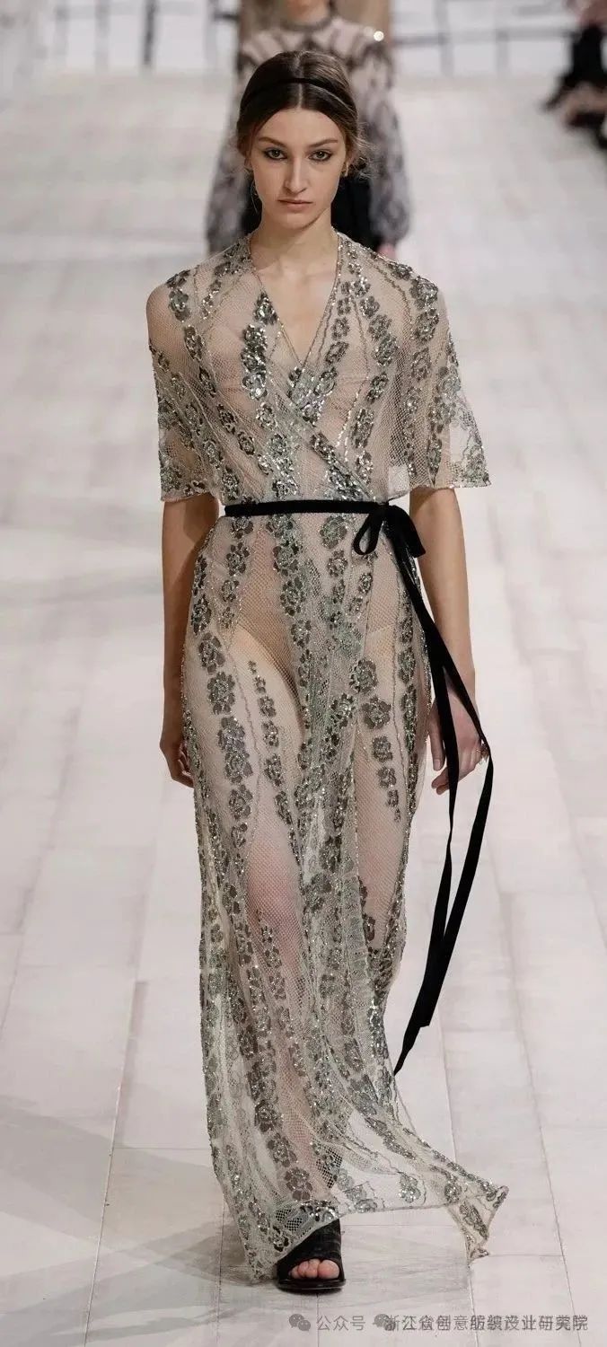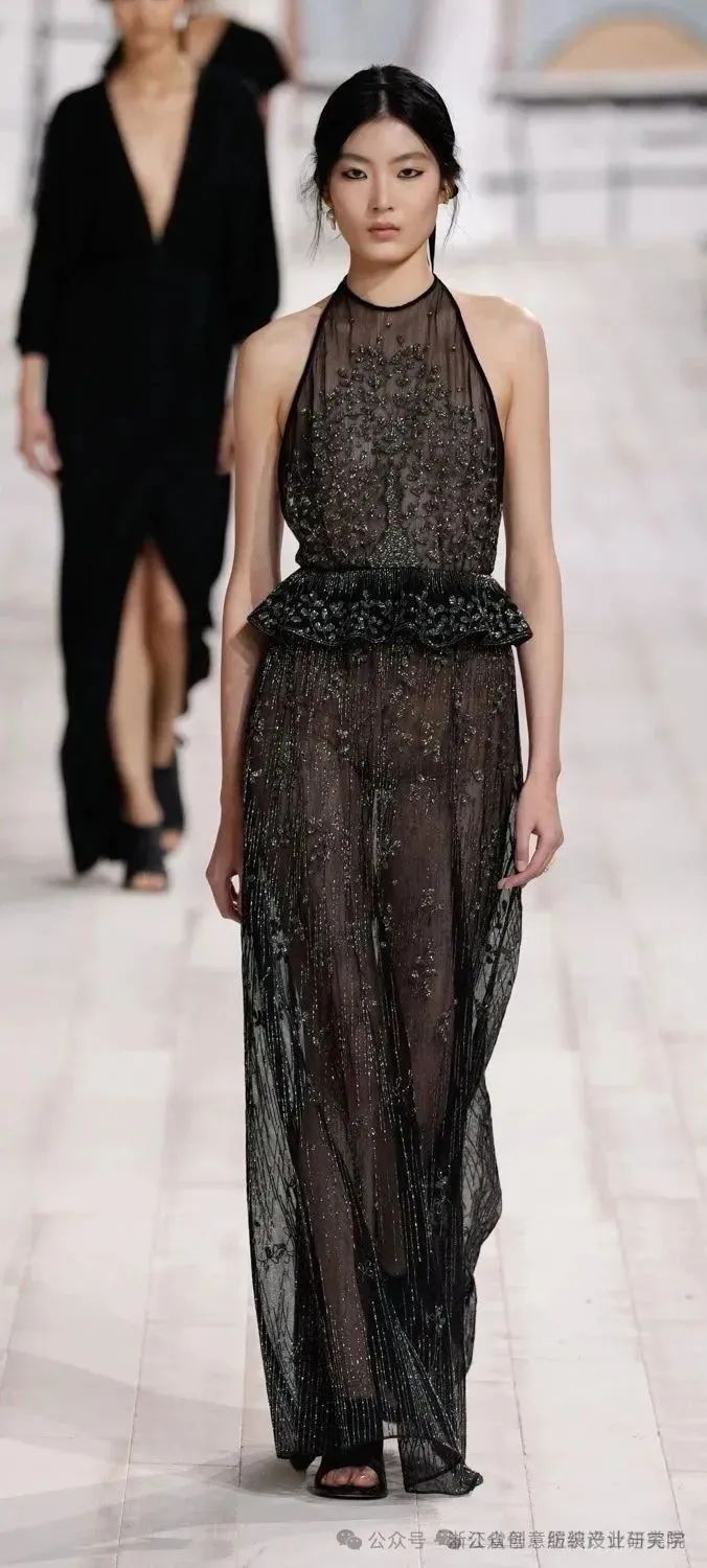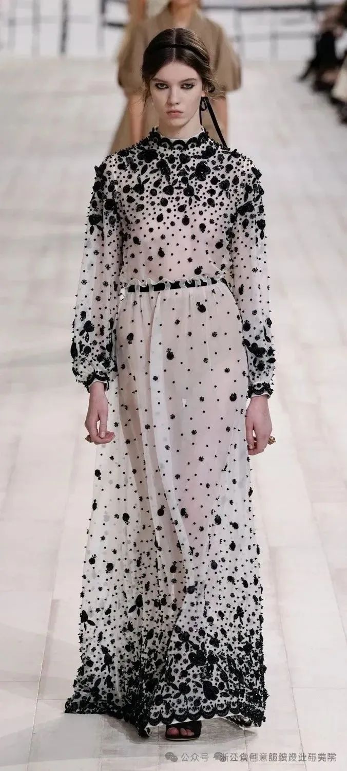 最后出场的是高定礼服系列,也许是受到大环境经济下行或战争的影响,很多品牌现在高定礼服的设计和工艺细节也变得日渐简洁,迪奥也不例外。