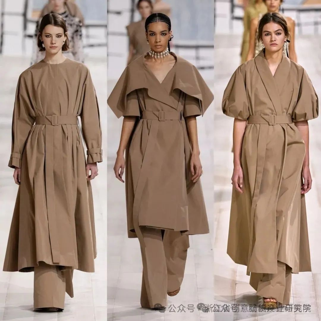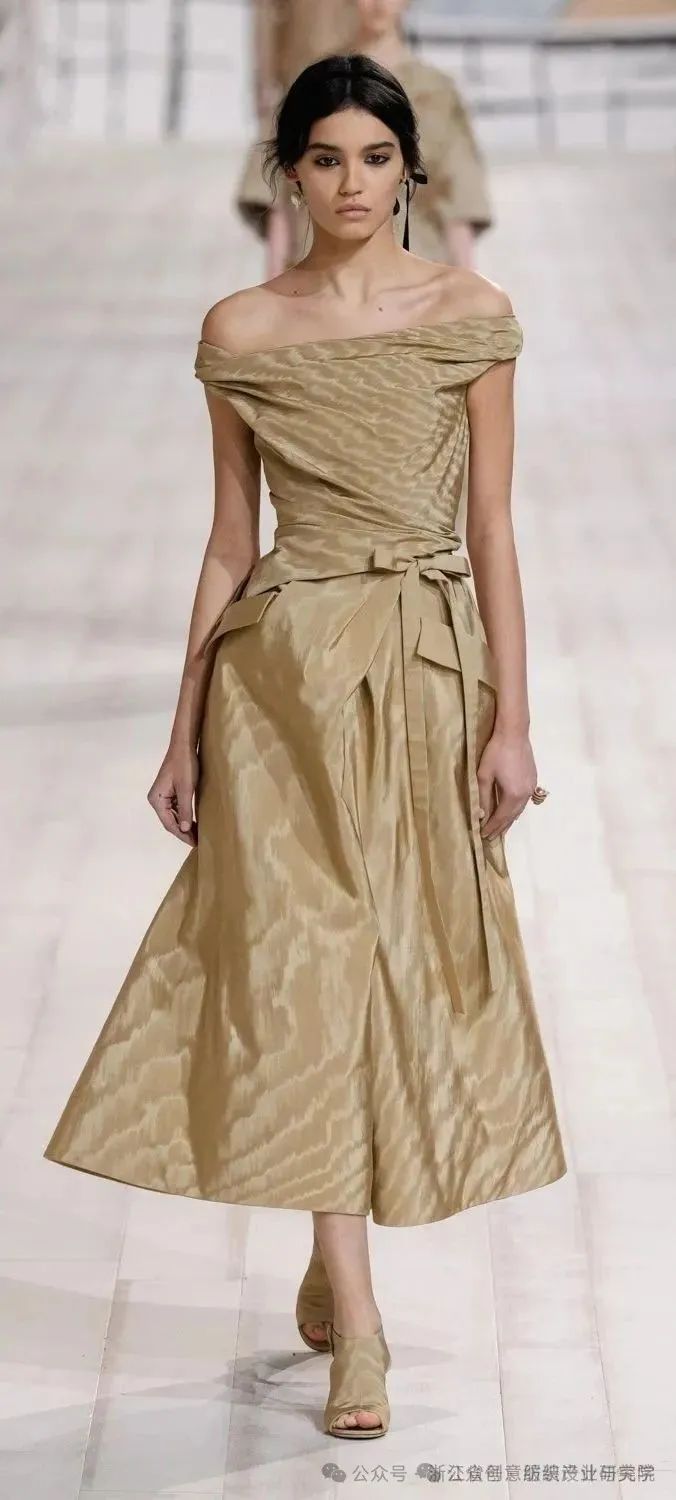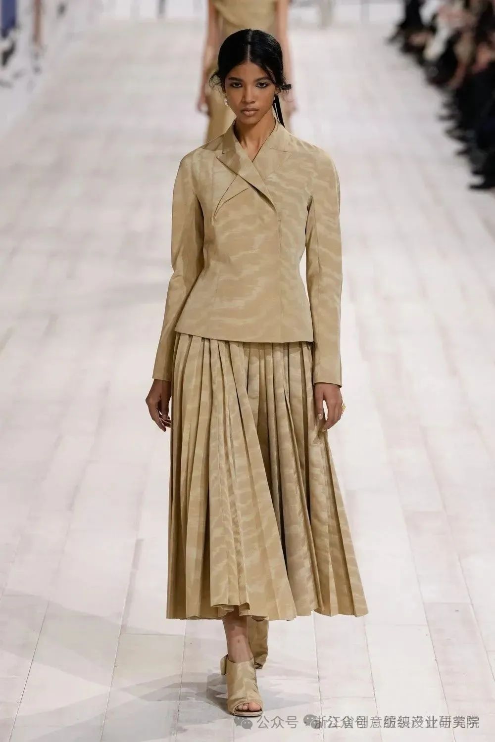 大秀开场首先展示了一系列卡其色时装,它们看起来既优雅又实穿,迪奥似乎试图扭转大众对 “高订” 的固有印象:高订的奢华,也可源于当代女性的日常衣橱。