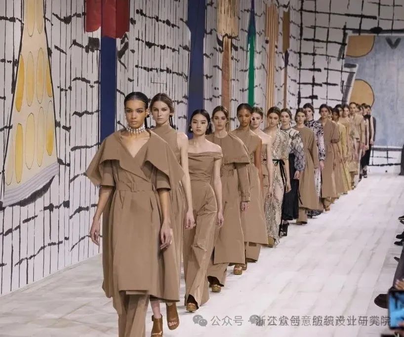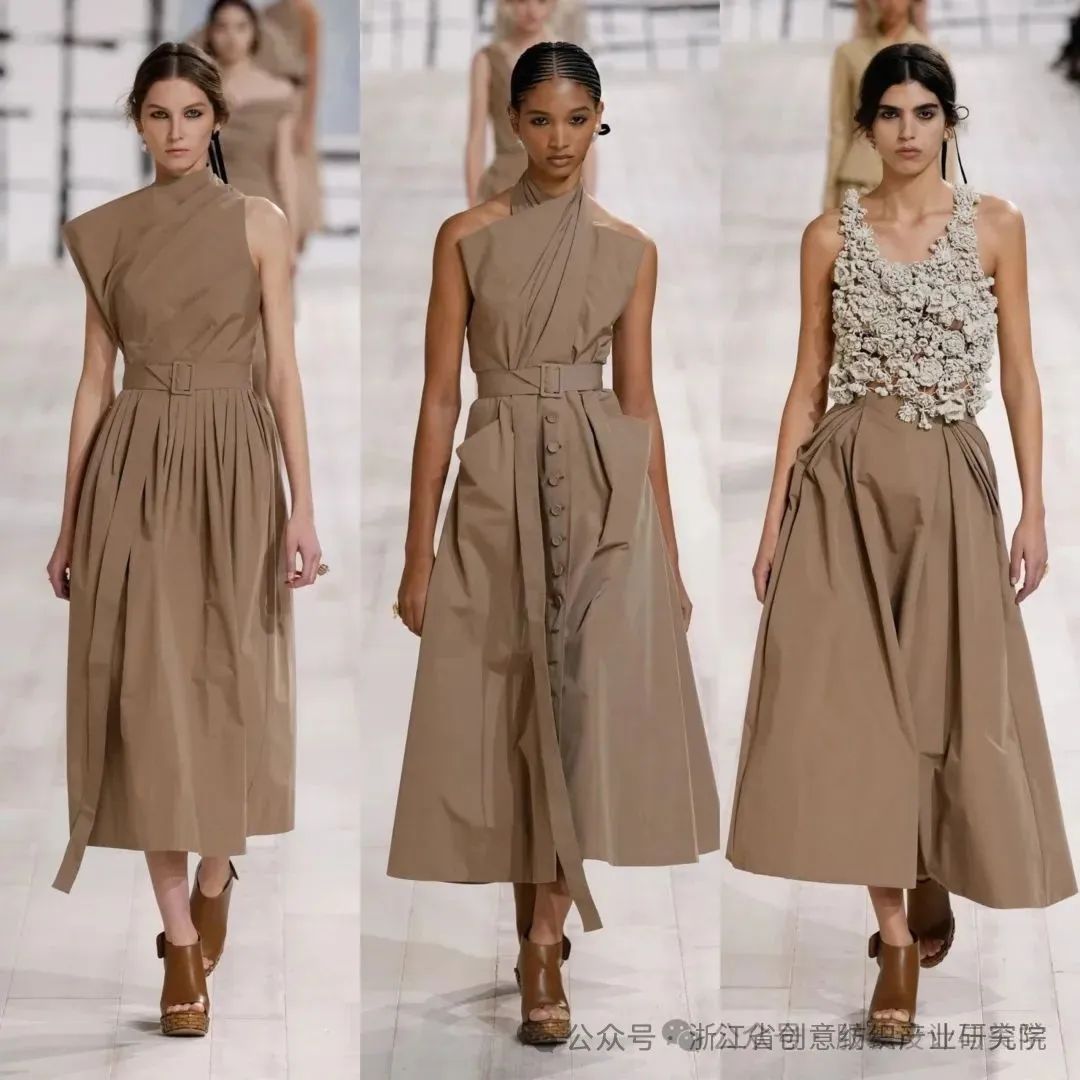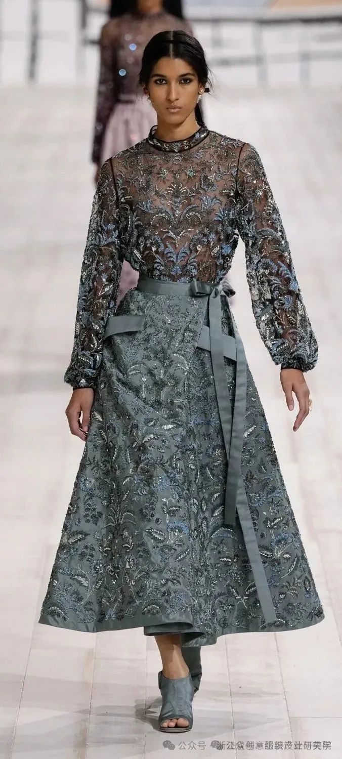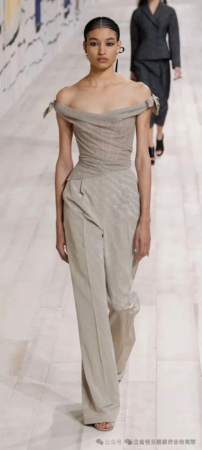 大秀开场首先展示了一系列卡其色时装,它们看起来既优雅又实穿,迪奥似乎试图扭转大众对 “高订” 的固有印象:高订的奢华,也可源于当代女性的日常衣橱。