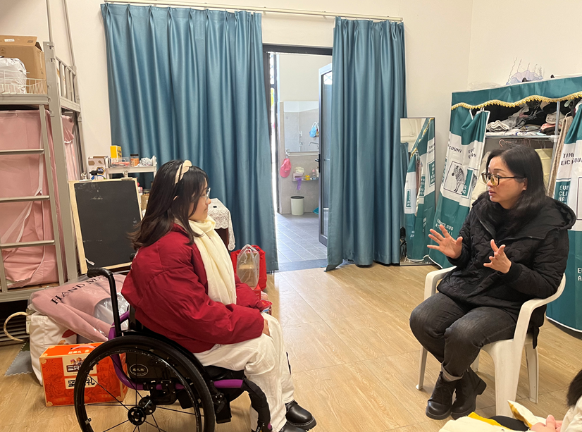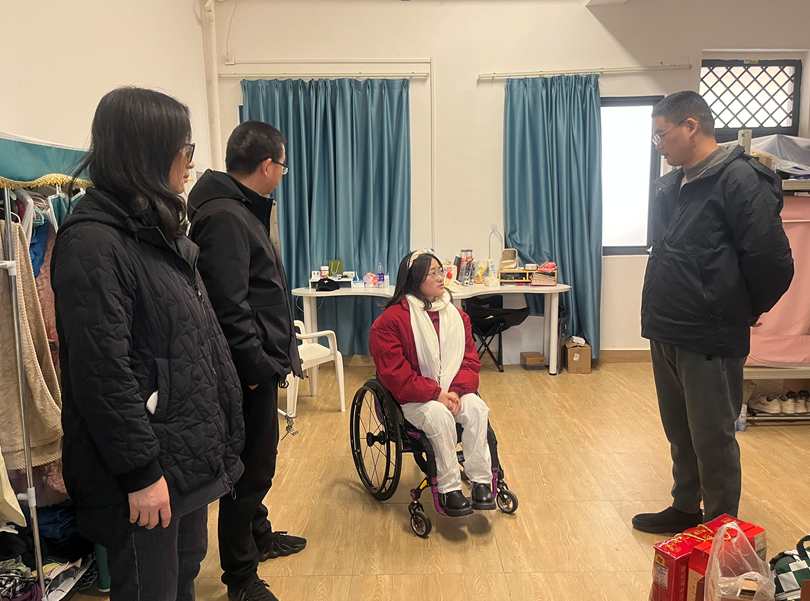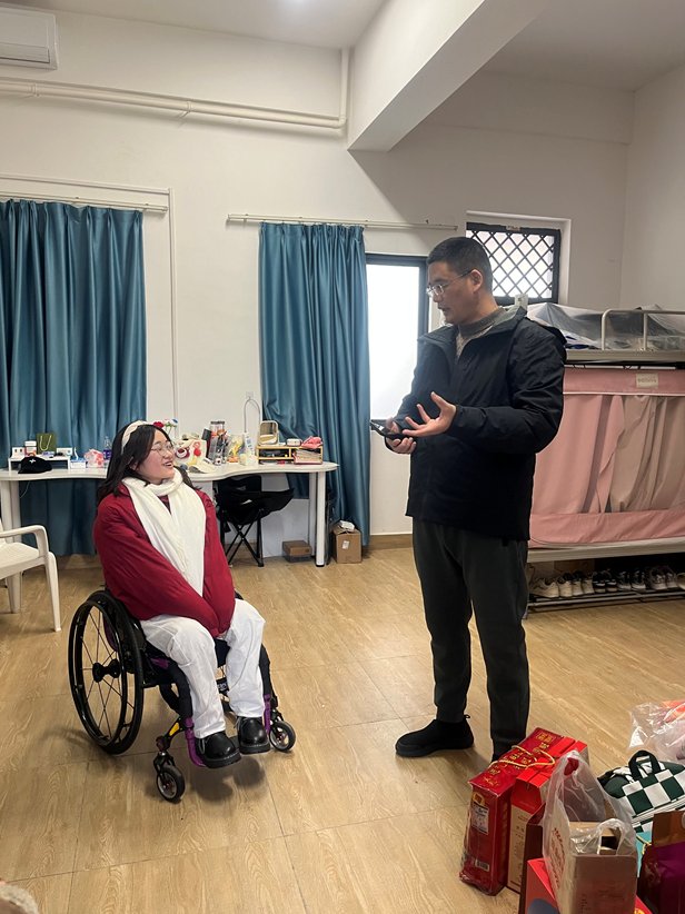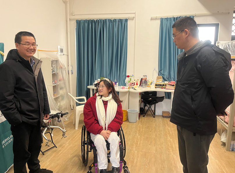 情系特殊学生,暖心传递关怀。1月24日下午,工艺美术学院党委书记柯志松、院长詹伟锋、党委副书记陈逸萍一行深入学生宿舍,走访慰问轮椅女孩李蒙。