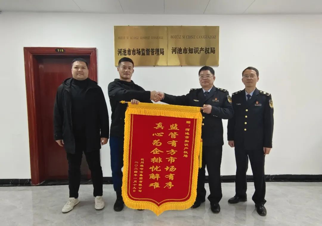 河池市市场监管局负责人表示,锦旗既是认可与肯定,也是鞭策与激励,下一步将持续加大对市场混淆侵权行为惩治力度,强化知识产权保护,维护公平竞争市场秩序,全力护航企业创新发展。