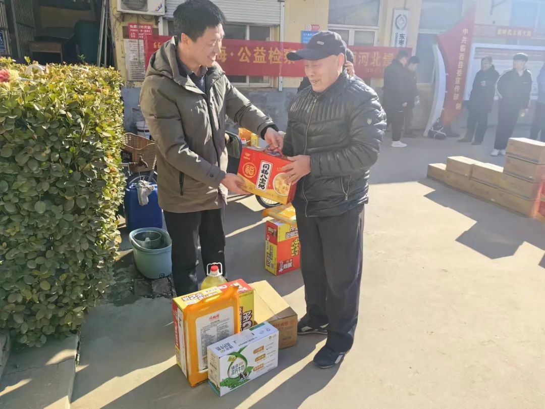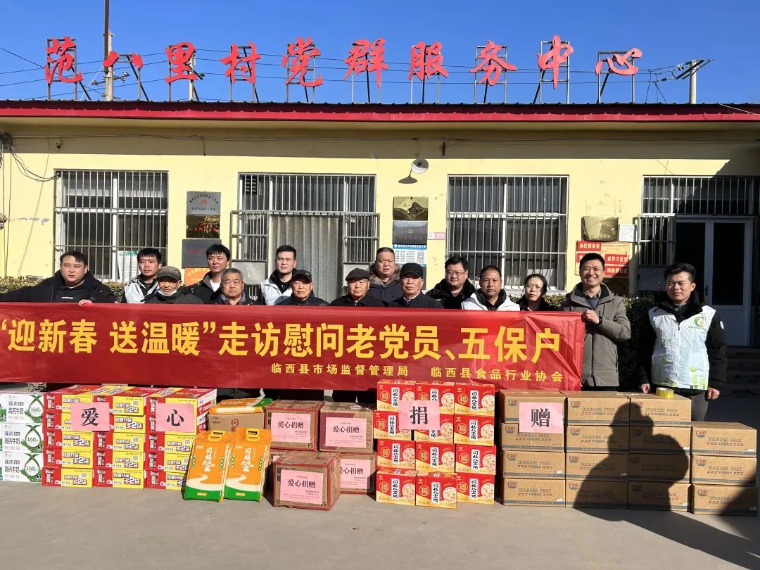 在新春佳节即将来临之际,1月23日,临西县食品行业协会在县市场监督管理局副局长刘保江带领下,来到枣园乡范八里村开展“迎新春 送温暖走访慰问老党员 五保户”活动。为在党50年以上老党员、五保户送去了慰问品,把党和政府的深切关怀送到群众身边,并致以新春的祝福与问候。