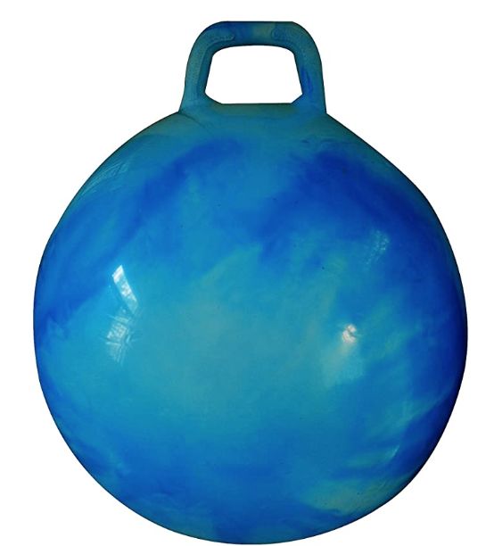 这种是让娃站着骑着蹦跶的,Amazon上4600+的好评,它里面有泡沫弹簧,每次落地会发出吱吱的声音,3岁以上的宝宝可以玩。