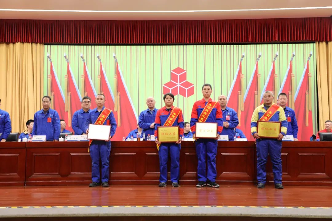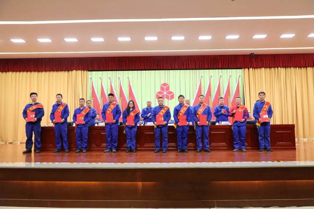 大会通报表彰了2023年度“岗位明星”、公司第十三届职工技能比武优秀选手、2023年集团职工技能比武优秀选手及优秀组织单位、第十四届全国石油和化工行业职业技能竞赛获奖选手和2023年度“好班子”及优秀经营管理者。
