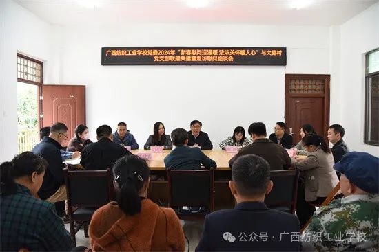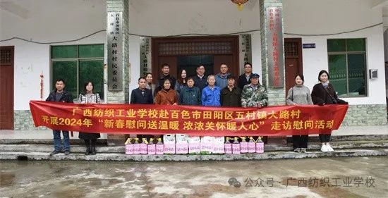 为贯彻落实党中央和自治区党委推进乡村振兴的重大决策部署,巩固脱贫攻坚成果,推动广西乡村全面振兴,充分发挥派出单位坚强的后盾作用,1月18日,由学校党委书记陈黔带队,党支部和相关部门代表赴百色市田阳区五村镇大路村开展2024年学校党委与大路村党支部联建共建活动,并走访慰问了驻村第一书记与当地困难党员,向他们致以新春美好祝福。