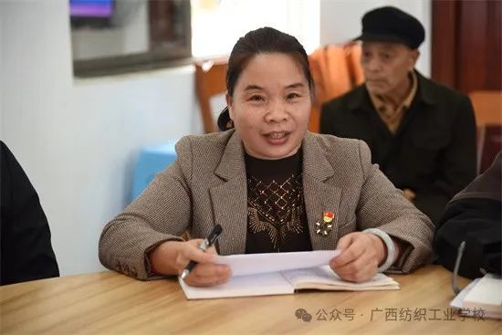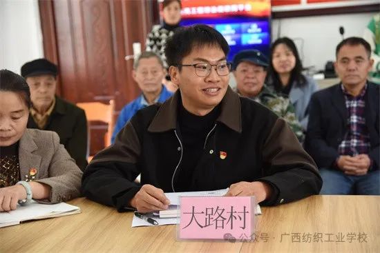 当天上午,大路村村部会议室内气氛热烈,与会的村“两委”成员、村民代表及党员代表等汇聚一堂,共同召开了座谈会。会上,首先由我校陈黔书记向参会人员传达学习习近平总书记视察广西时的重要讲话精神,并与老乡们分享学校近期的发展成果,同时祝愿大路村发展稳步向前。随后,驻大路村第一书记蓝诚斌作了2023年的驻村工作汇报,总结了这一年来在产业发展、基础设施建设、帮扶群众等方面的情况。