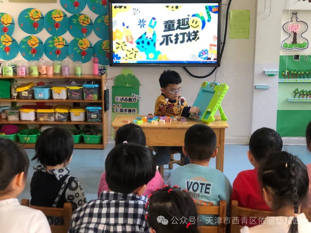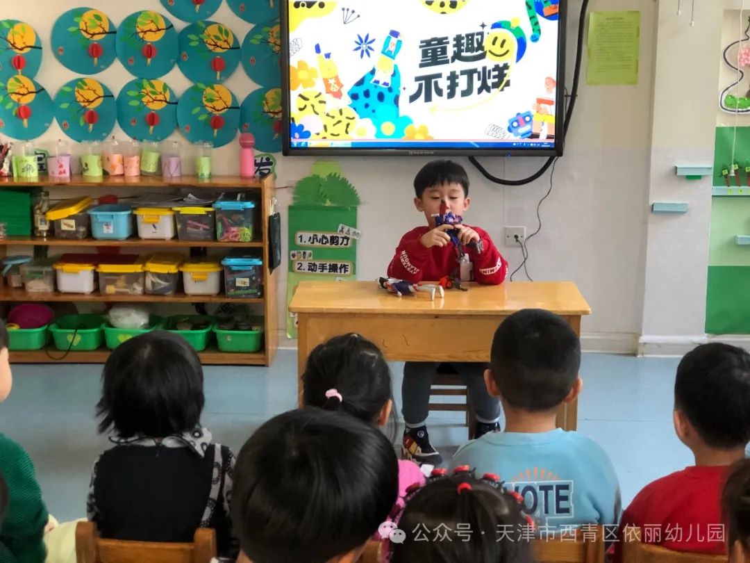 孩子们向同伴介绍了自己玩具的名称,演示并解说具体的玩法,小朋友们笑意灿烂,认真描述着自己心爱的玩具,把最大的快乐送给了台下的小观众们。