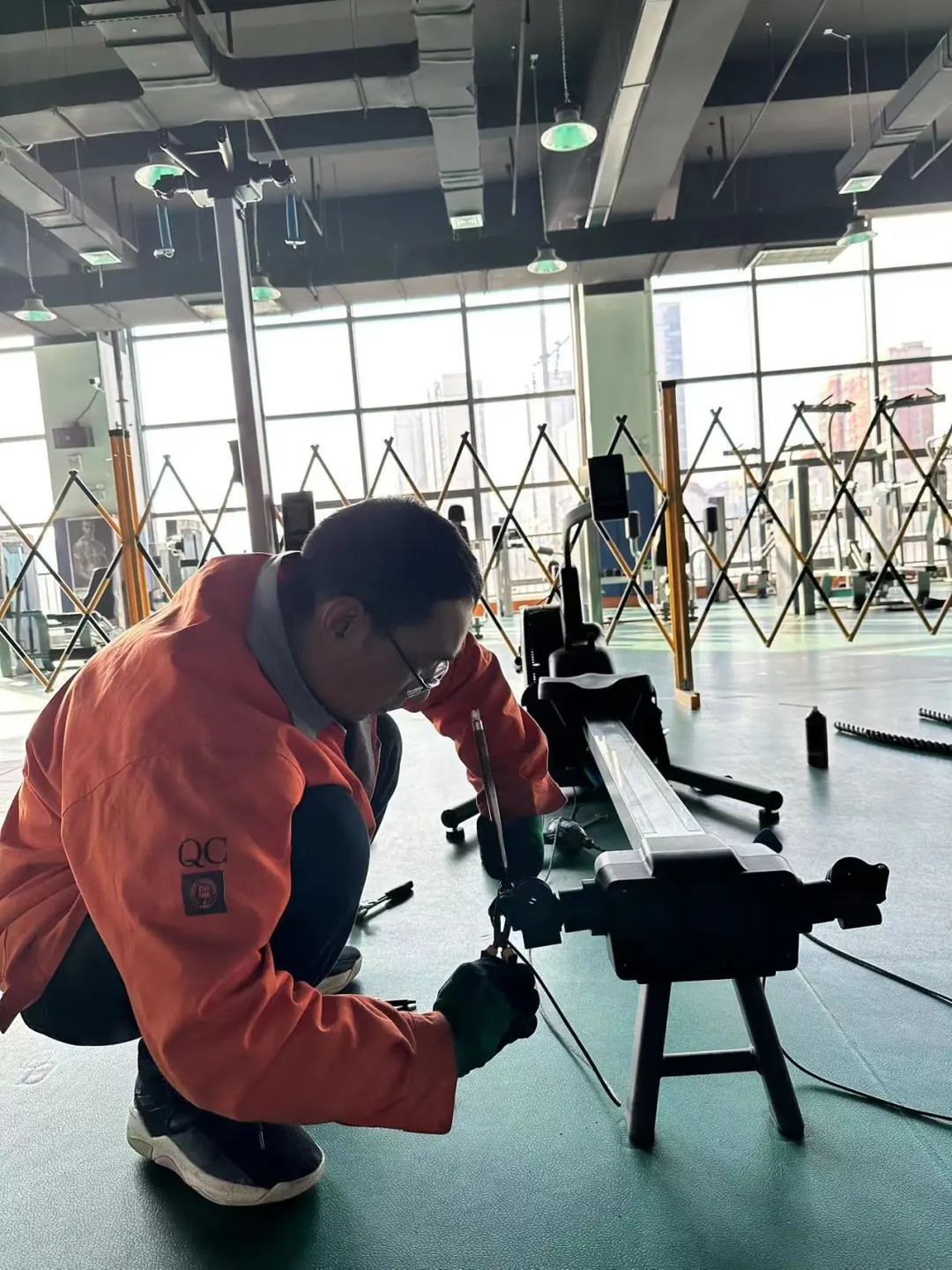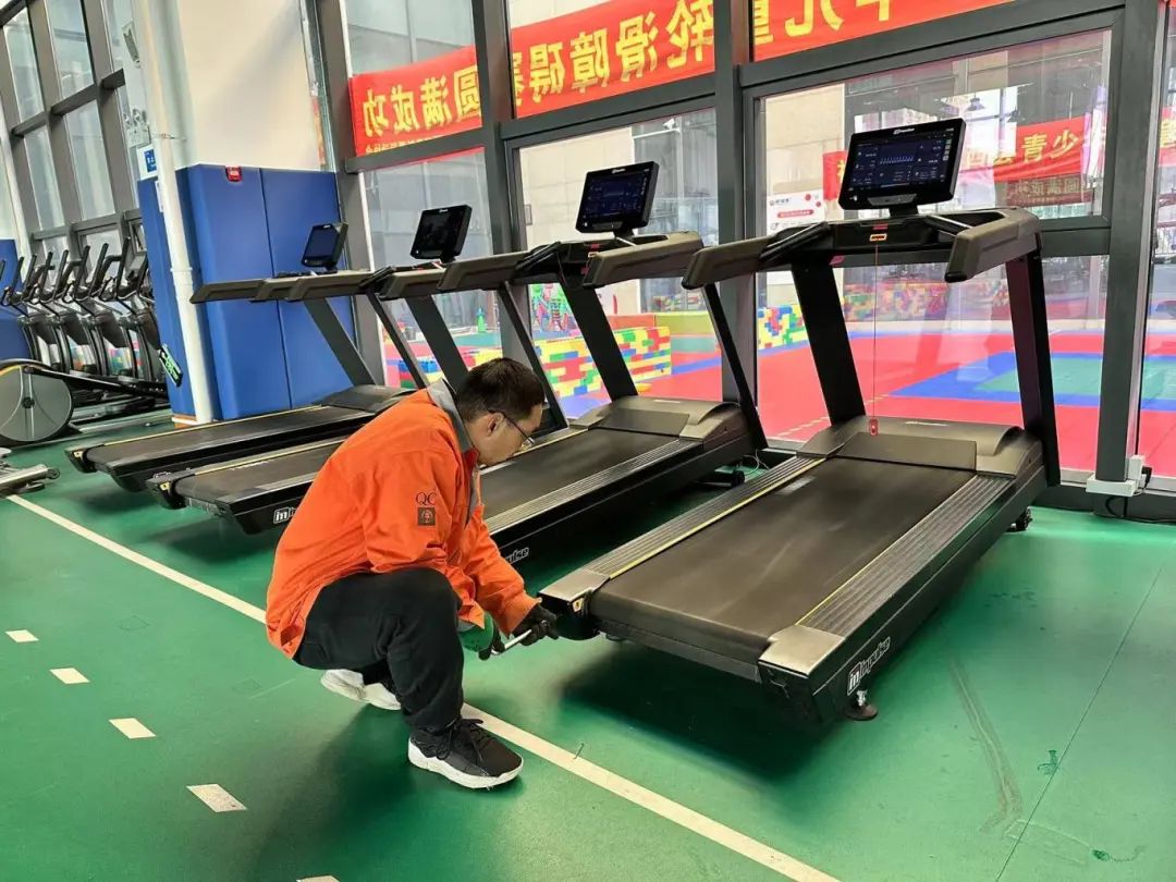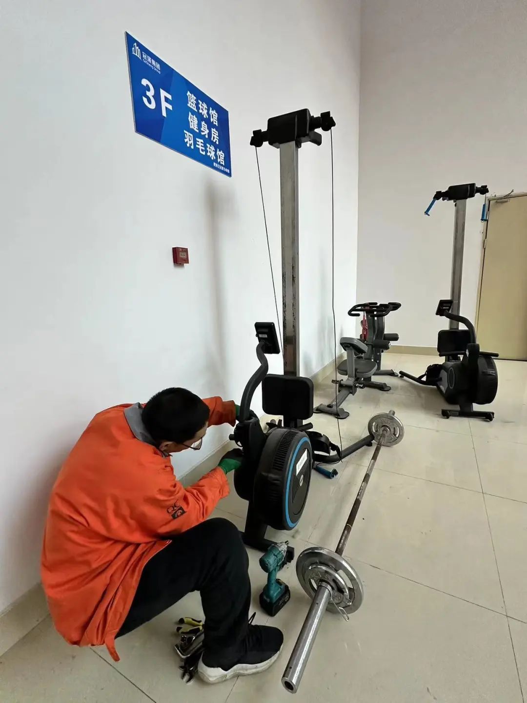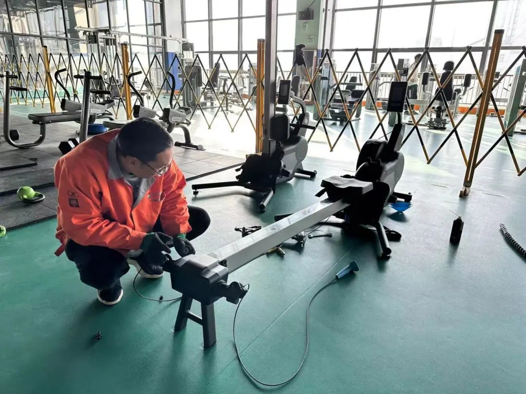 此次维护器材包含跑步机、划船机、椭圆机、以及龙门架等固定器械区域器材,对松动固件部位已进行加固处理,表面进行清洗养护,检查所有配件是否密合,对于破损需更换的部分零件已安排采购,以保证器材运动时顺畅无异常。