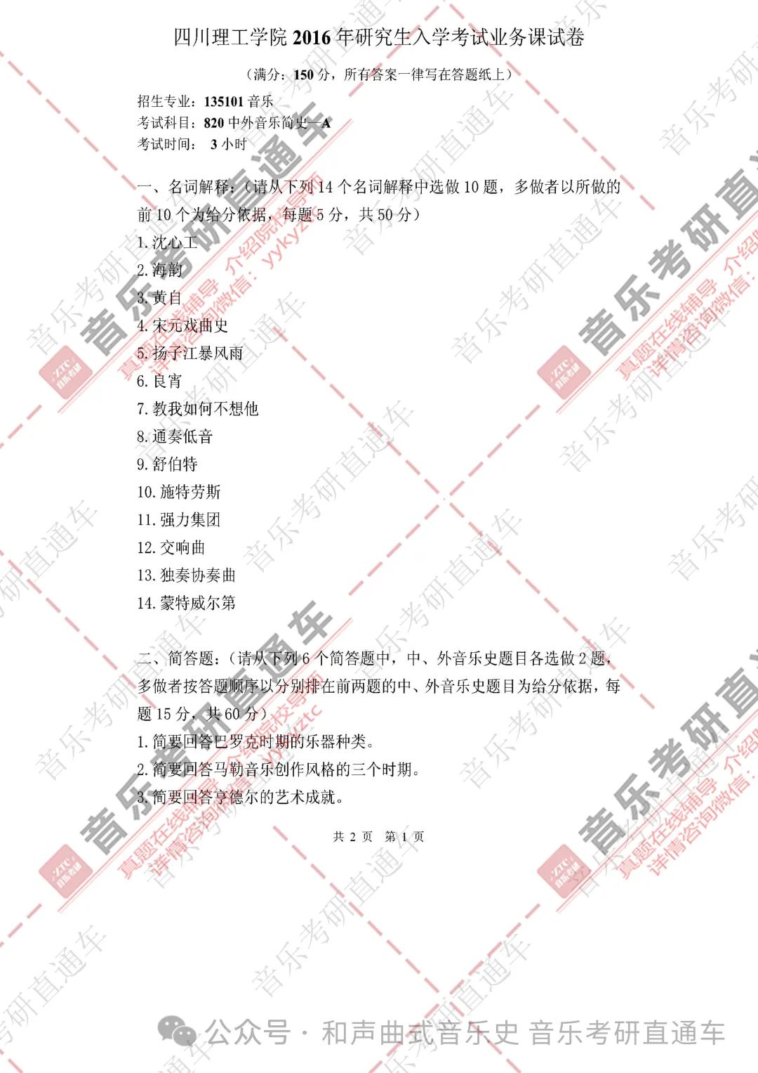 音乐考研直通车 |2016年四川轻化工大学中外音乐史真题
