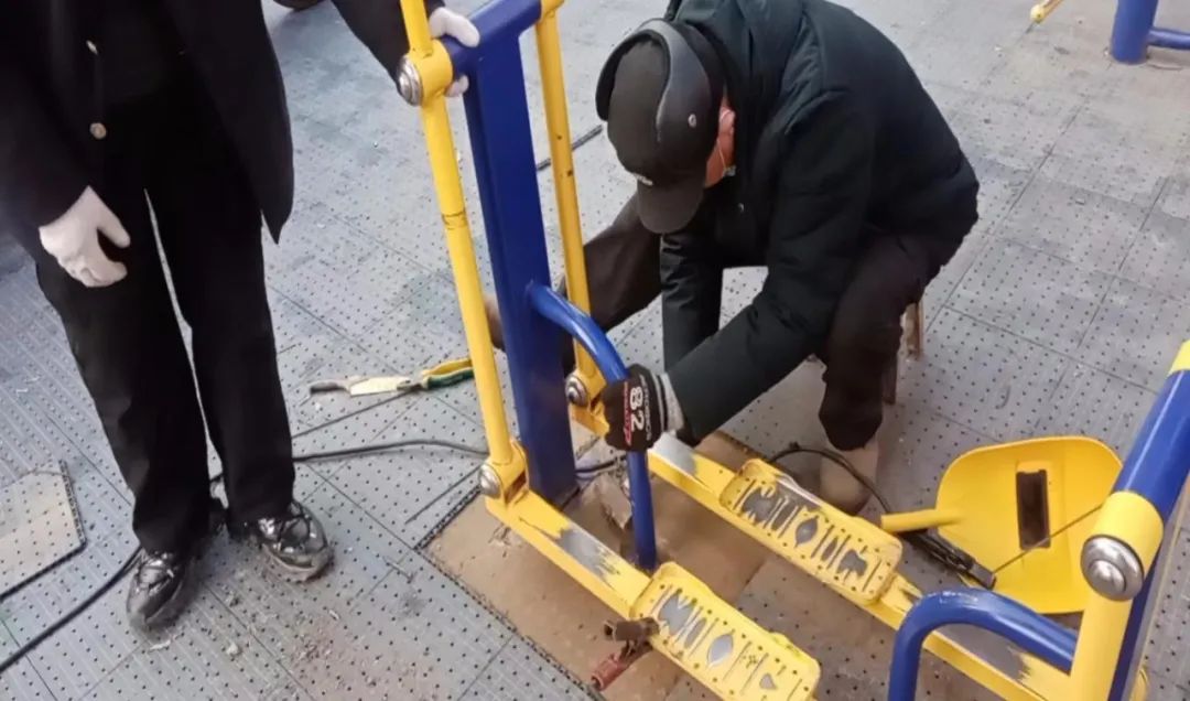 在维修过程中,维修人员认真检查了器材的使用情况,并对损坏的部件进行了焊接和修复。他们还对器材进行了清洁和润滑,确保居民在使用时能够感受到舒适和安全。经过师傅的努力,健身器材可以正常使用了。