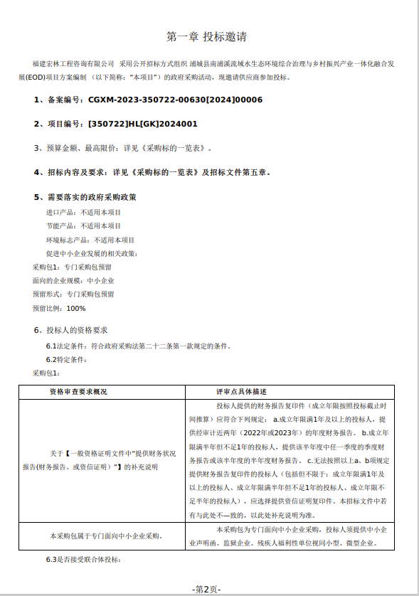 2.【招标】EOD-福建浦城县南浦EOD项目方案编制