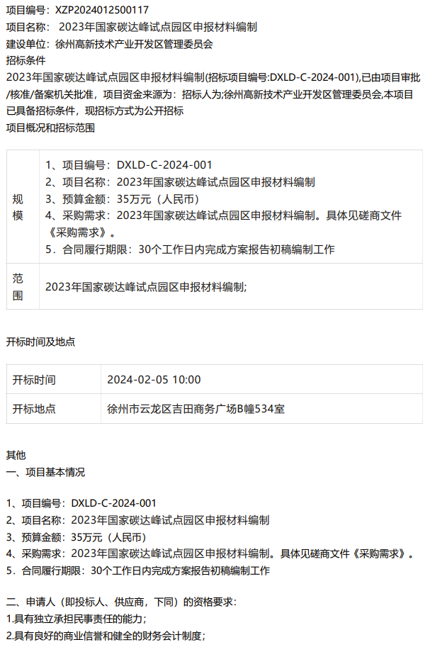 7.【招标】双碳园区35万-2023年国家碳达峰试点园区申报材料编制竞争性磋商公告