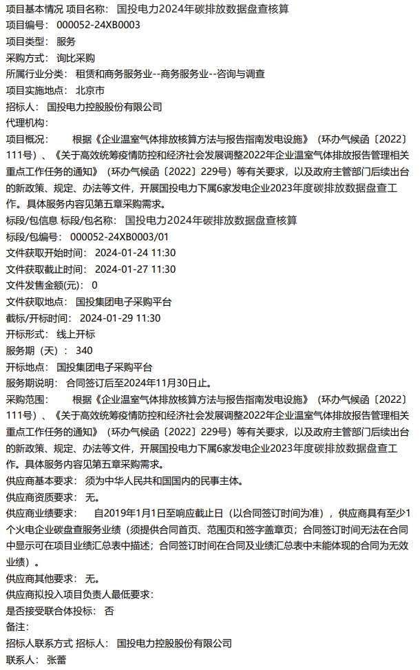 8.【招标】碳排放-国投电力2024年碳排放数据盘查核算询比采购公告