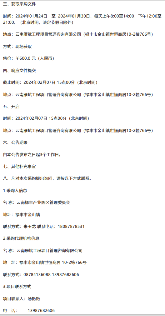 云南禄丰产业园区管理委员会云南禄丰产业园区绿色园区申报服务项目