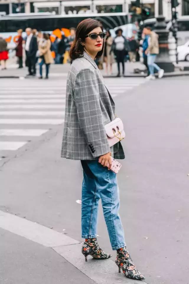 格子西装的复古,正适合搭配牛仔裤的街头帅性,它们俩是最适合的百搭单品。