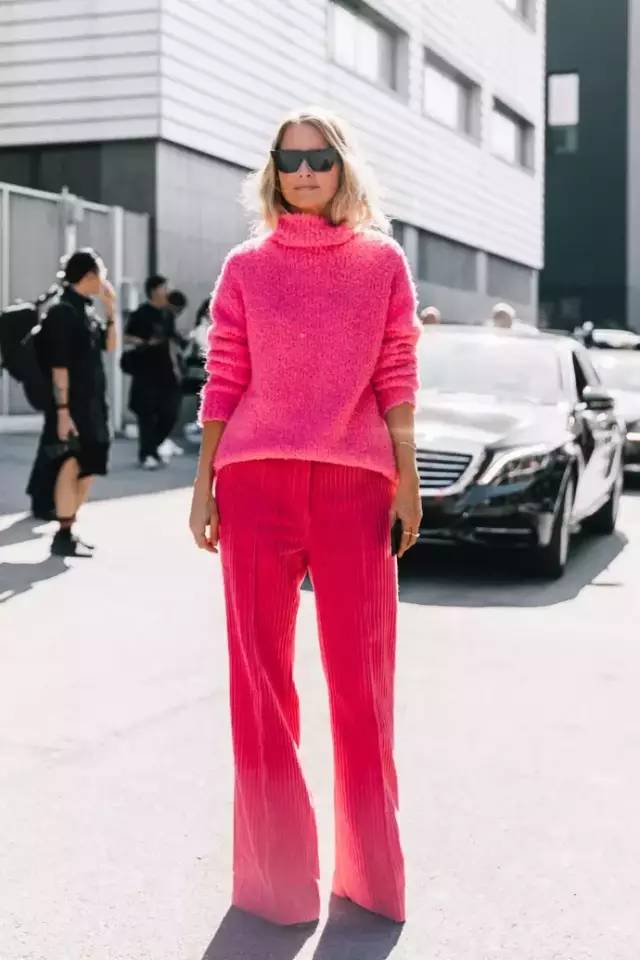 不同色度的粉色搭配在一起,靓丽的很时髦。