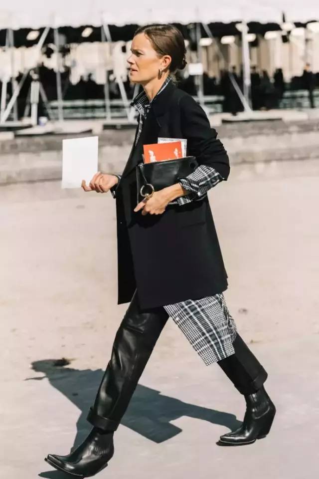 全身都是黑色单品的时候,可以用一件内搭来增加层次感和时髦调性