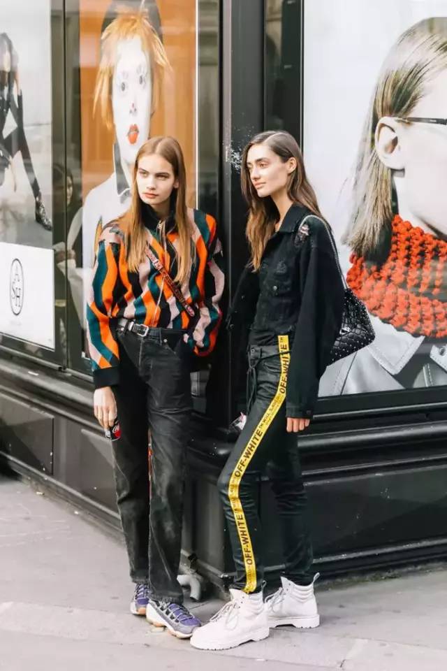 全身都是黑色系的难免不够新颖,可以用几种鲜艳别致的条纹拼接上衣,搭配黑色牛仔裤和运动鞋,雅痞还时髦。