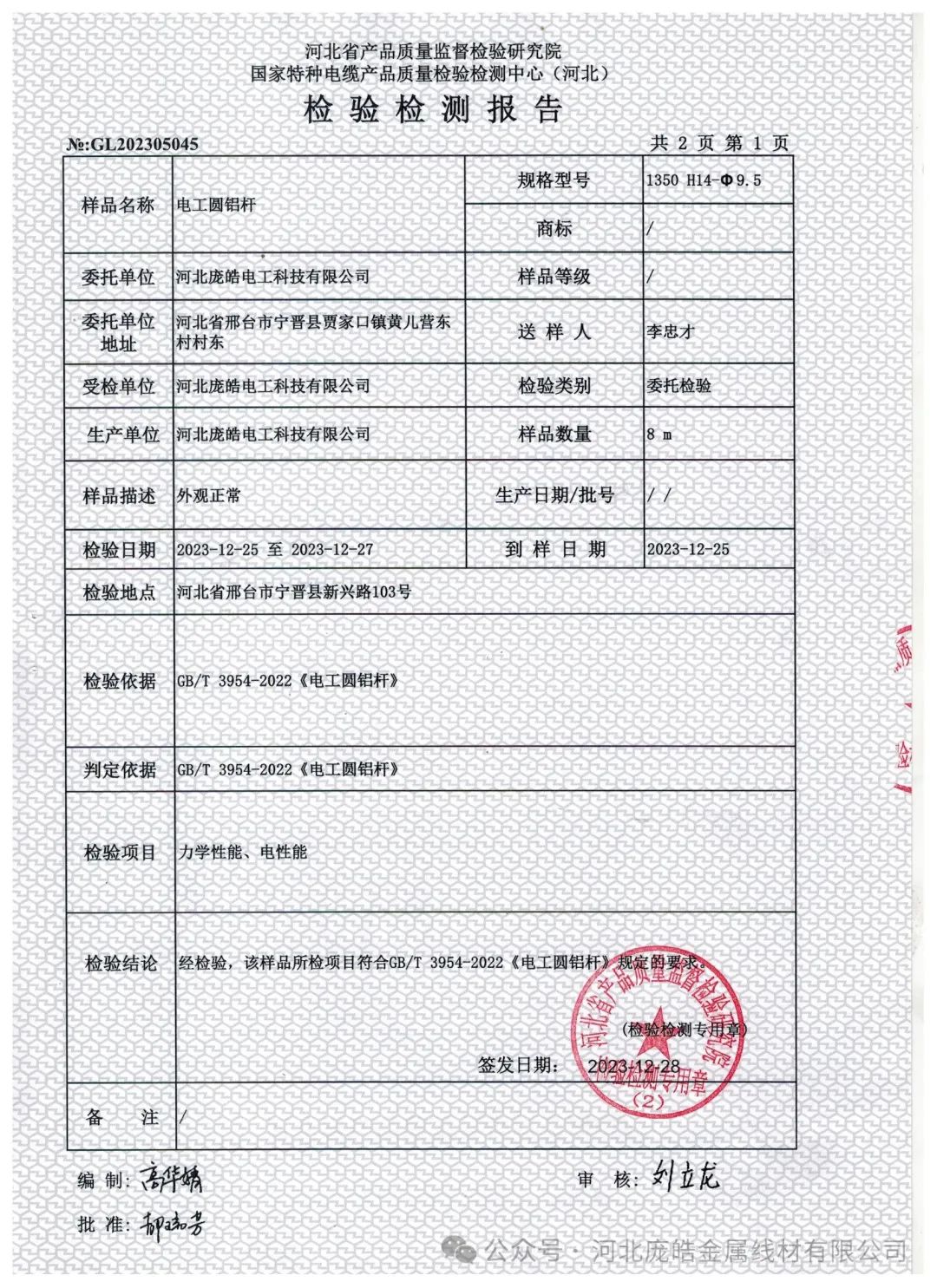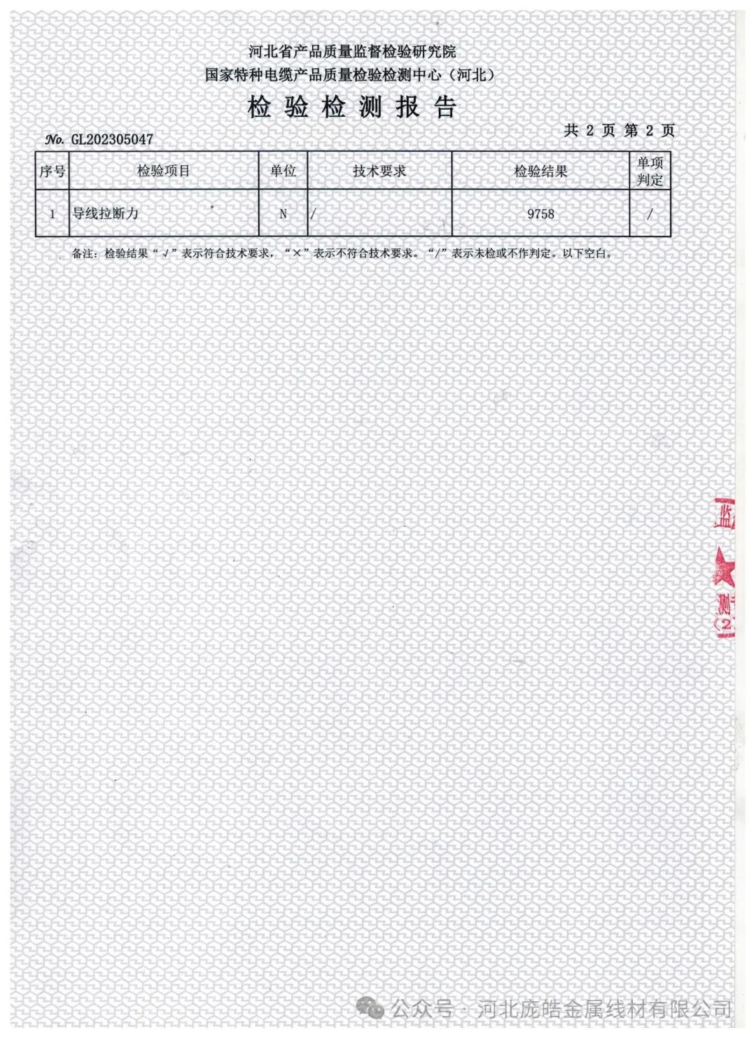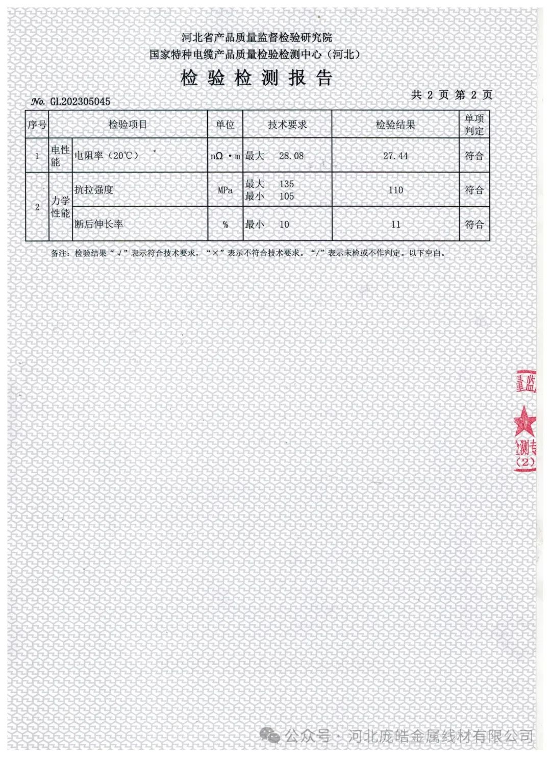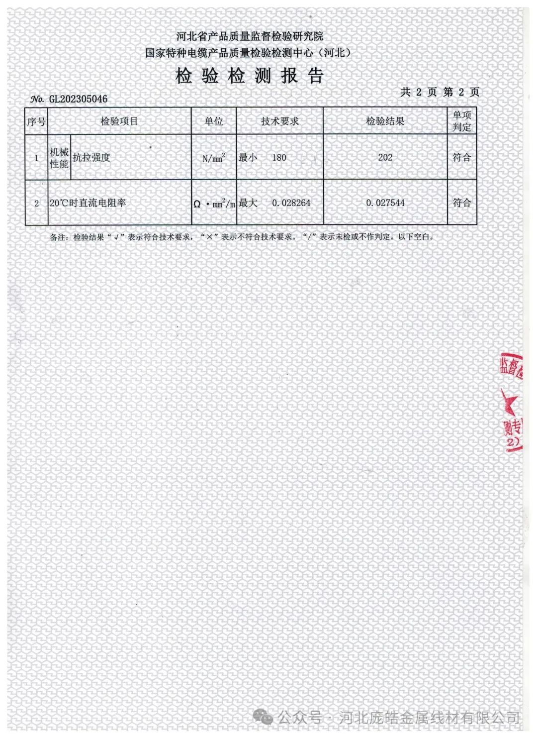 【产品质量检验报告】河北庞皓电工科技有限公司