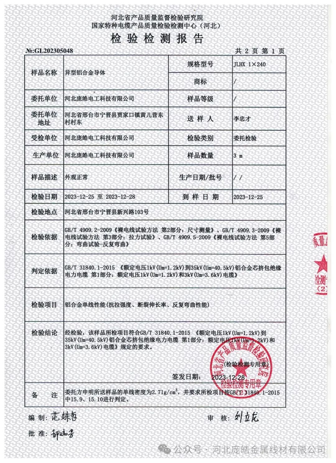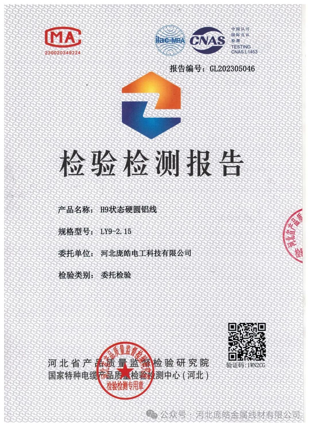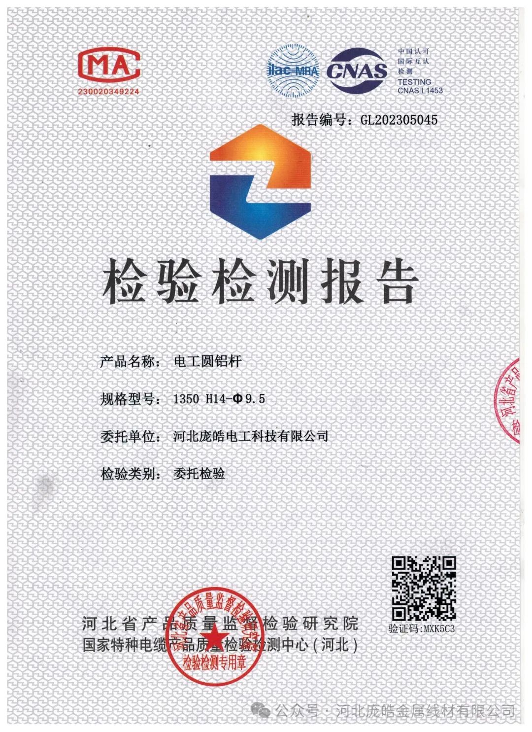 【产品质量检验报告】河北庞皓电工科技有限公司