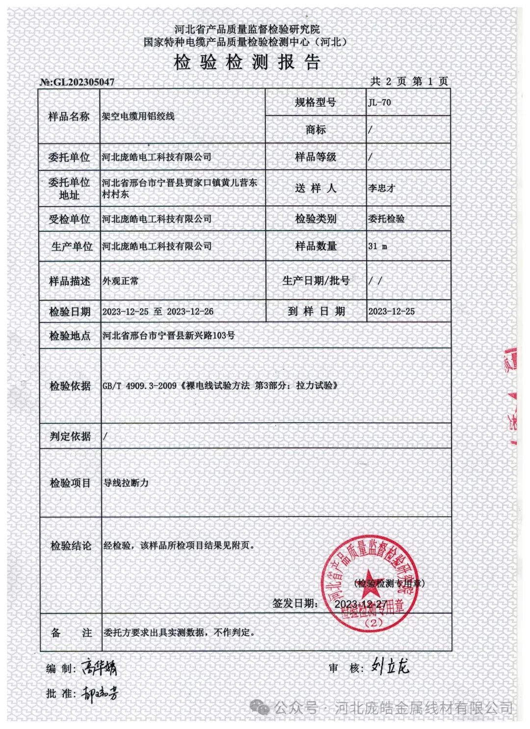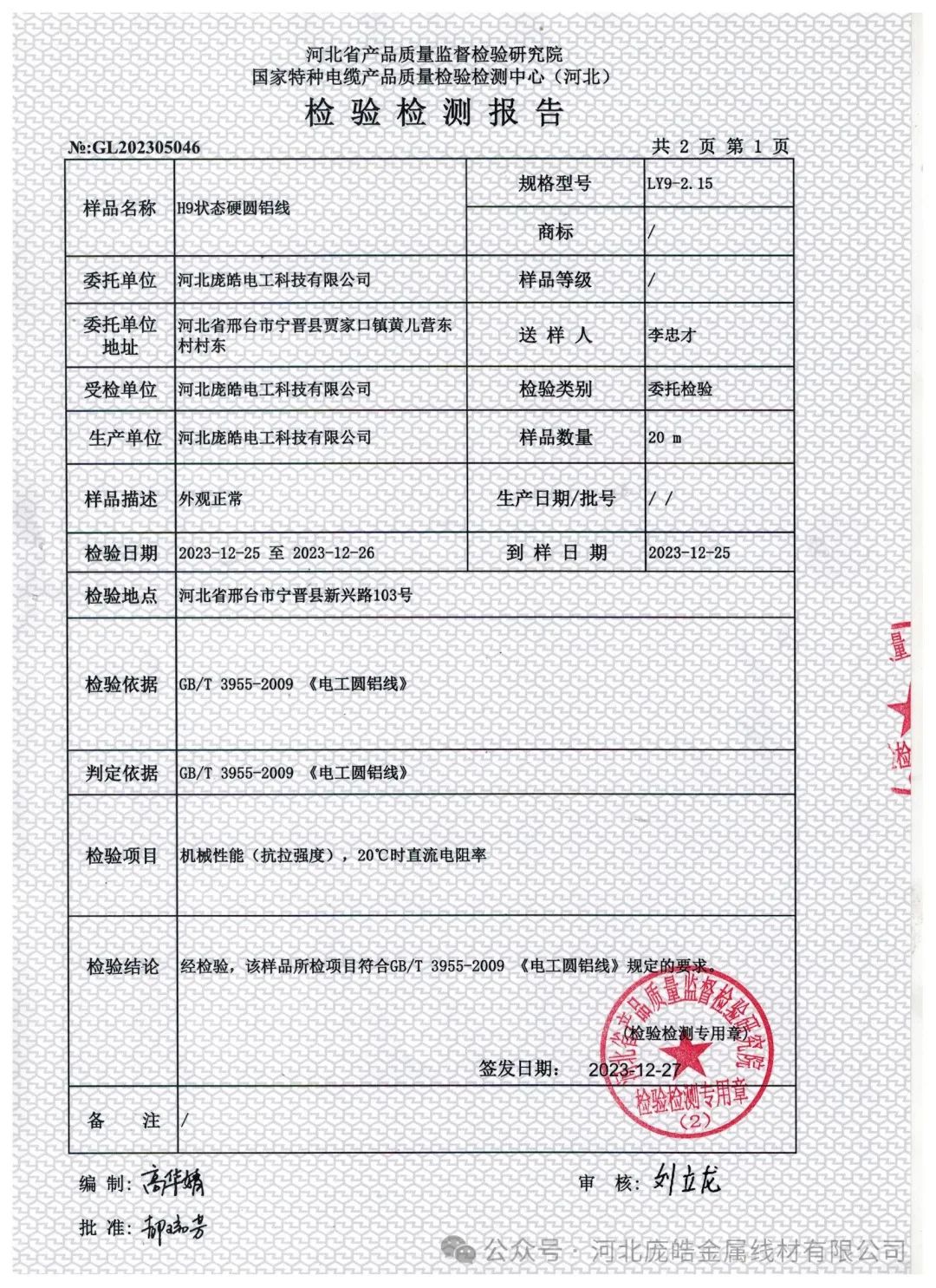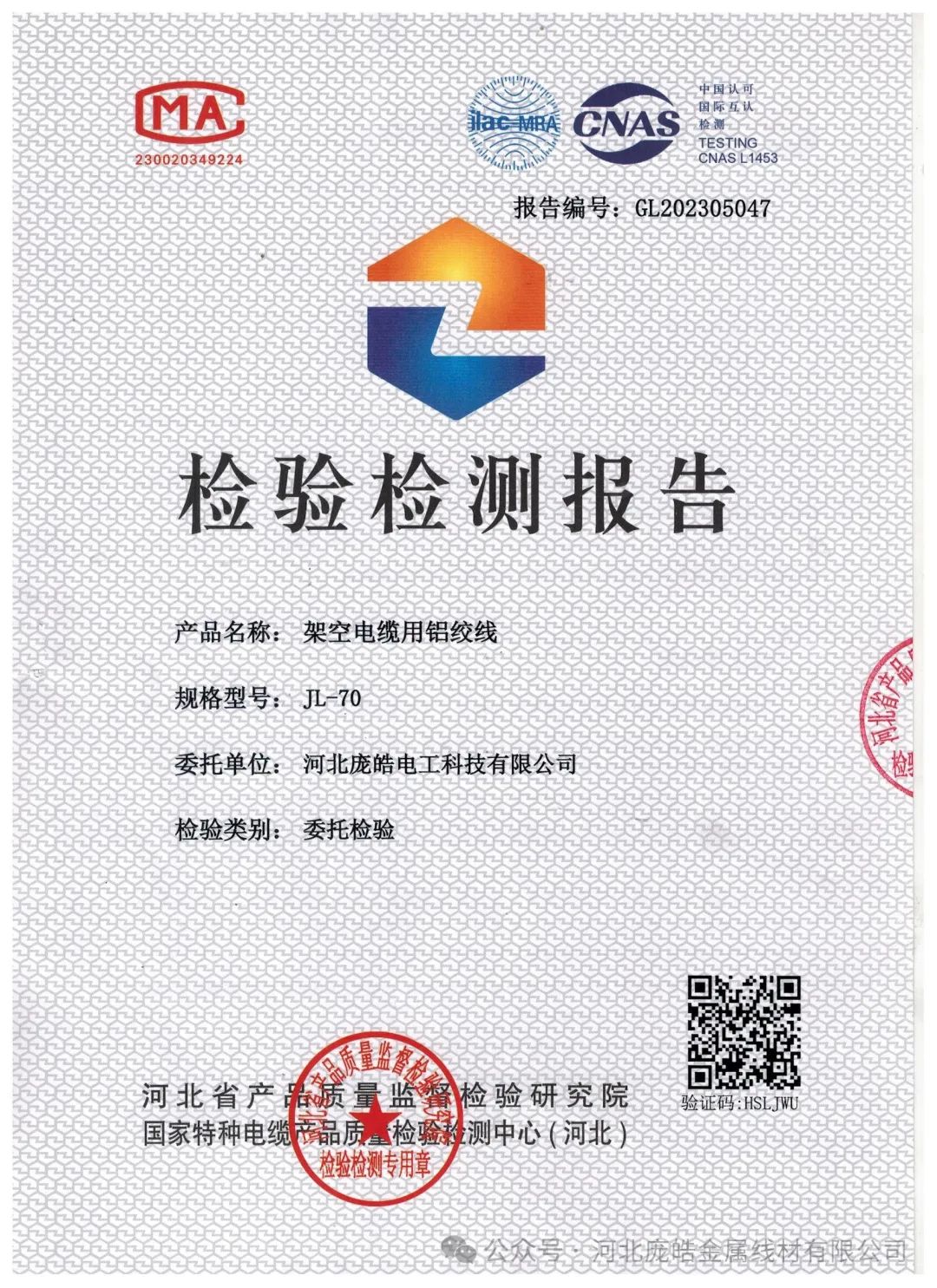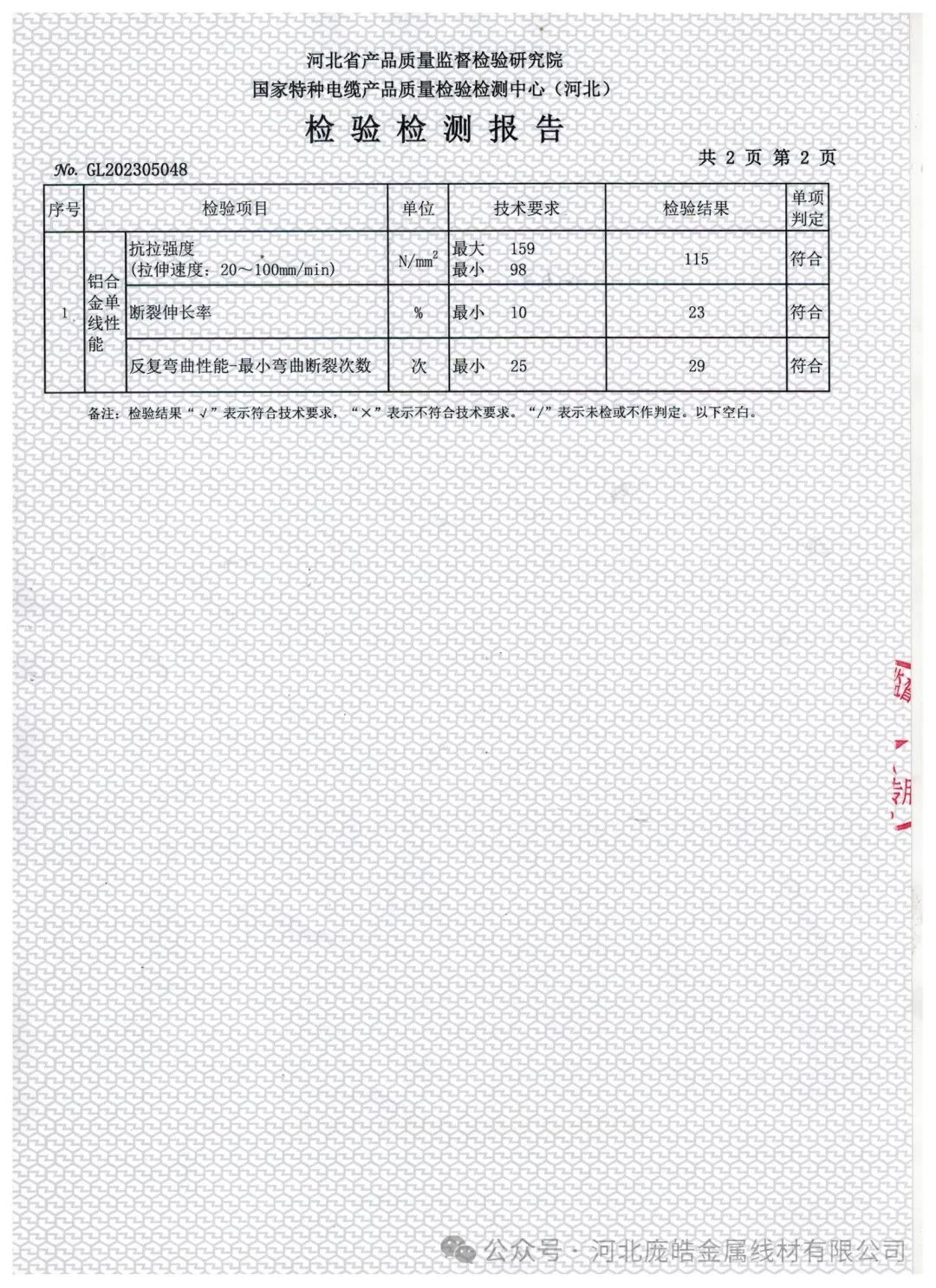 【产品质量检验报告】河北庞皓电工科技有限公司