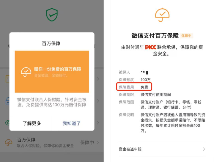 用户可以在微信-我-服务-钱包-消费者保护-安全保障中,查看自己的微信支付“百万保障”。