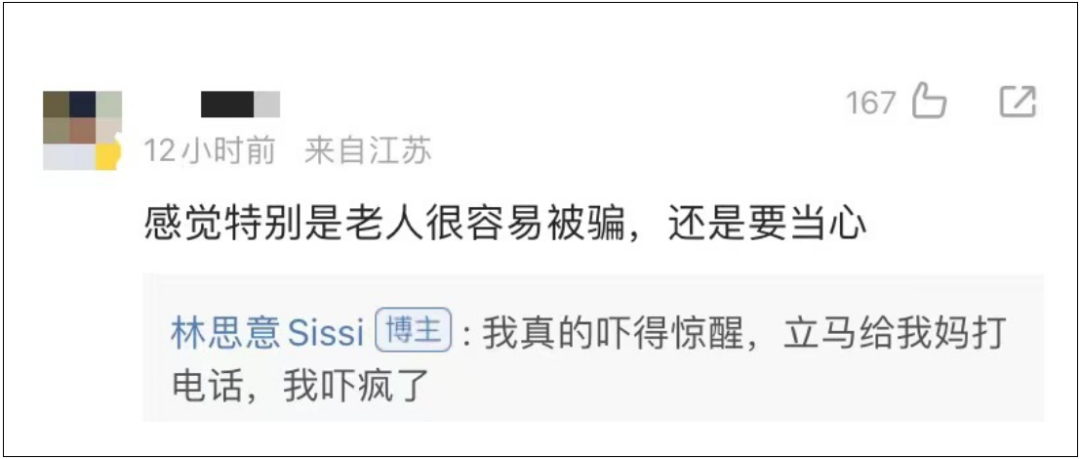 在评论区里,林思意回复网友“我真的吓得惊醒,立马给我妈打电话,我吓疯了。”