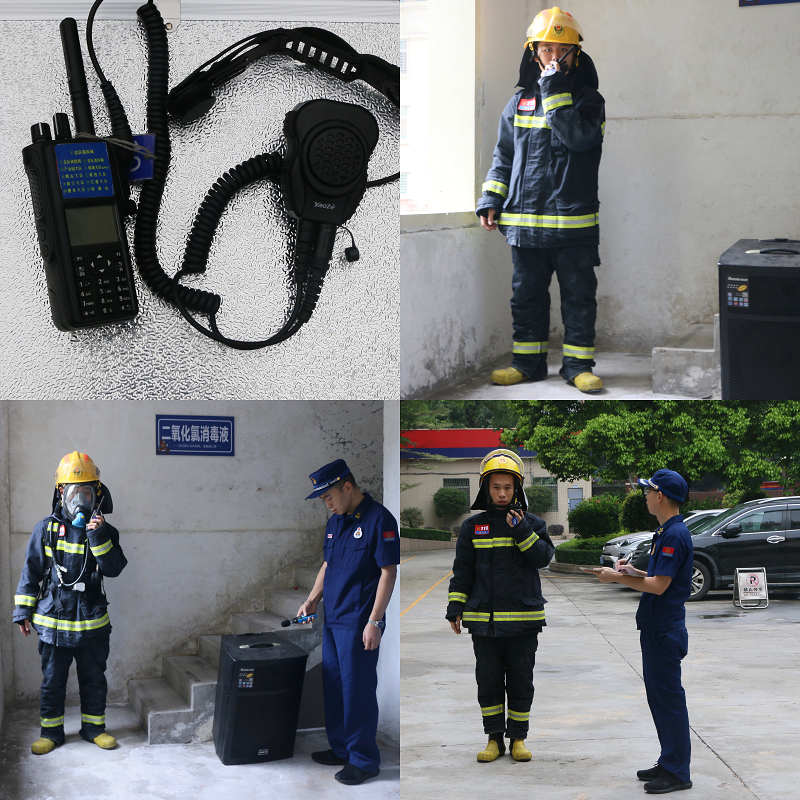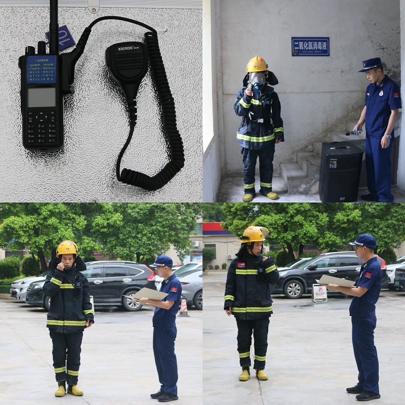经过测试,普通350兆对讲机加上肩咪后,在80db噪音值下,在模拟火场内无法听清对讲机通信内容,达到100db噪音值,户外对讲机无法听清模拟火场内声音;同时在消防员佩戴空气呼吸器面罩时,发现普通350兆对讲机在70db噪音值下,在模拟火场内无法听清对讲机通信内容,达到80db噪音值,火场外对讲机无法听清模拟火场内声音。