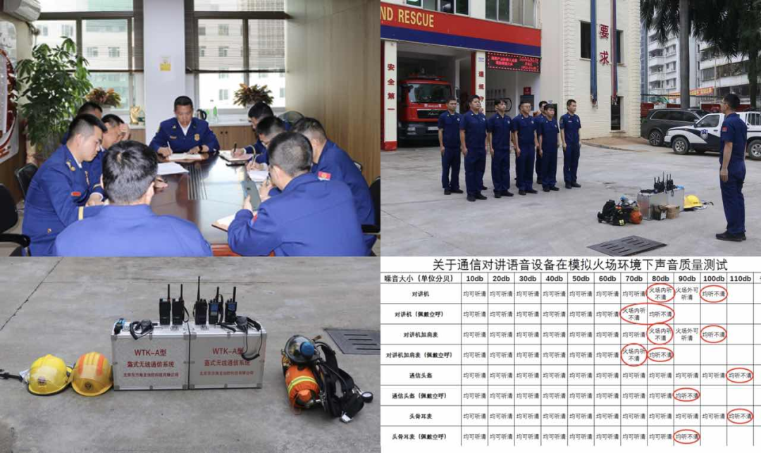 经过测试,普通350兆对讲机在80db噪音值下,在模拟火场内无法听清对讲机通信内容,达到100db噪音值,户外对讲机无法听清模拟火场内声音;同时在消防员佩戴空气呼吸器面罩时,发现普通350兆对讲机在70db噪音值下,在模拟火场内无法听清对讲机通信内容,达到80db噪音值,火场外对讲机无法听清模拟火场内声音。