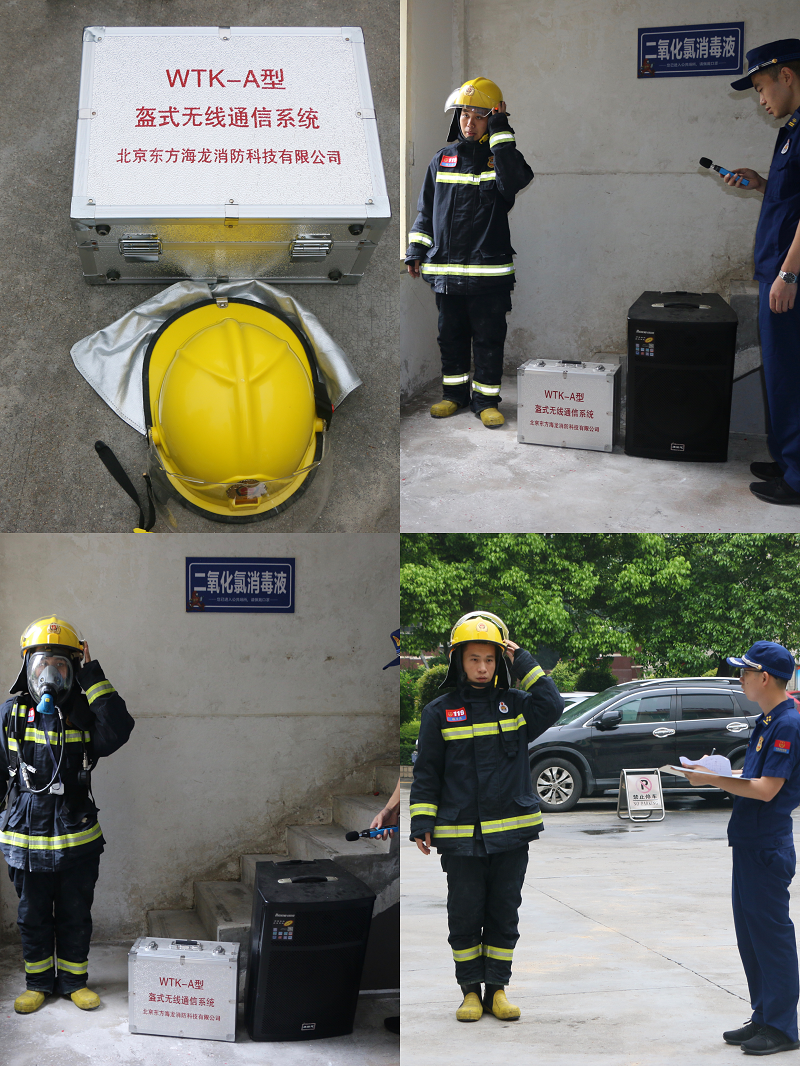 经过测试,发现盔式无线通信系统设备,在噪音110db下,在模拟火场内外均无法听清通信内容;同时在消防员佩戴空气呼吸器时,佩戴盔式无线通信系统设备,火场噪音达到90db后,火场外消防员无法听清火场内传来的对讲内容,火场噪音达到110db后,火场内消防员无法听清火场外传来的对讲内容。