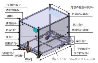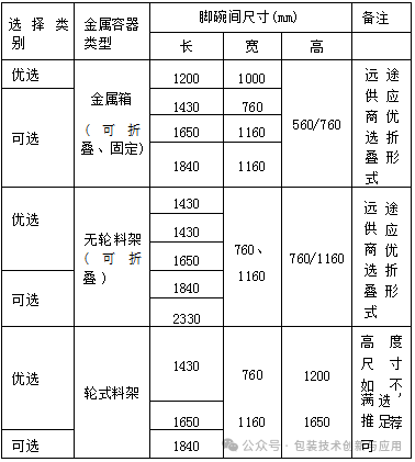 5.1 包含塑料箱、塑料托盘及顶盖、金属容器(金属 箱、无轮料架、轮式料架)、围板箱及纸箱;