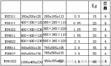 d).EU箱的高度尺寸148mm、280mm 为备选系列,若使 用此尺寸,需光束汽车包装工程师同意后才可使用。