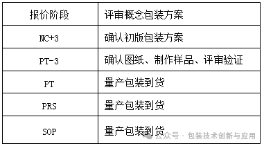 4.1.4在PT阶段开始前三个月开始,供应商按照确认的 《零部件包装信息确认表》开始打样,满足 PT 阶段 过程验证的需求;