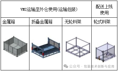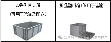 3.4 配送包装:交付到光束工厂端可直接用于配送到 生产线使用的循环器具。主要包括外仓储翻包配送到 光束工厂、直送供应商使用的循环器具,如 EU 箱、 轮式工装等。