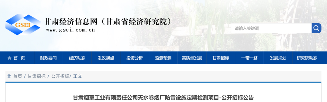 甘肃烟草工业有限责任公司天水卷烟厂防雷设施定期检测项目已具备招标条件,现委托兰州正泽招投标代理有限公司对该项目进行公开招标。本次招标最终确定1名中选服务商。欢迎符合资格条件的投标人前来投标。