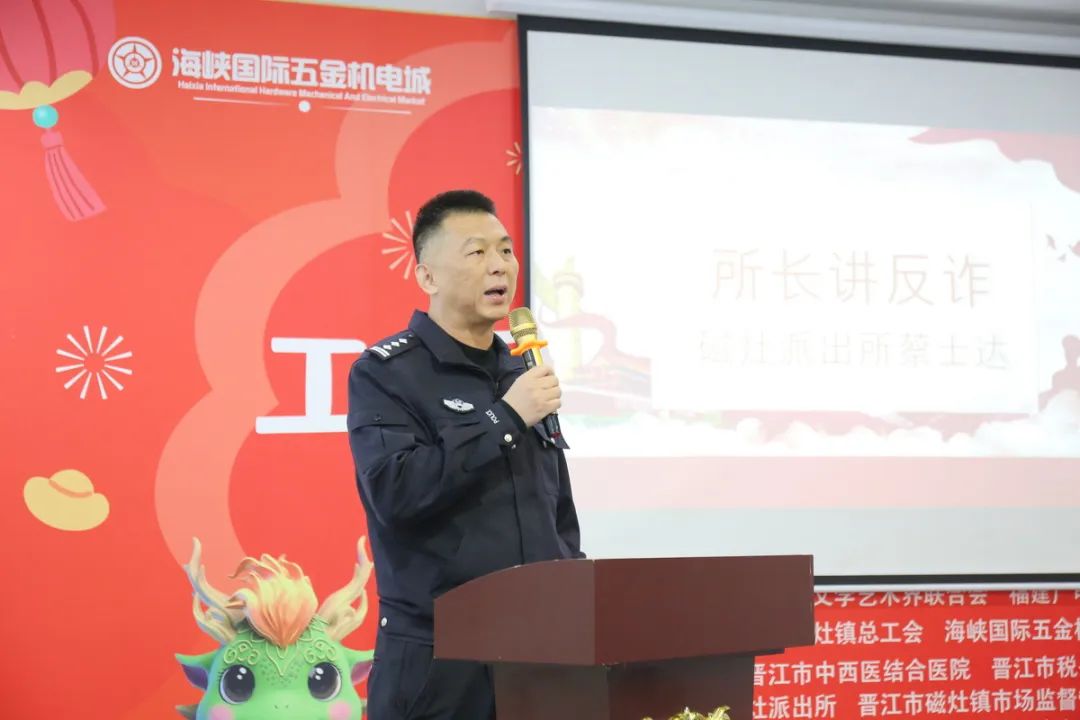 磁灶镇党委委员、派出所所长蔡士达现场作反诈宣讲