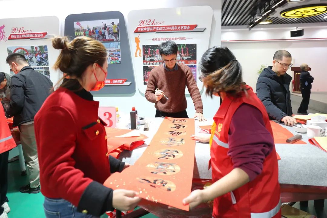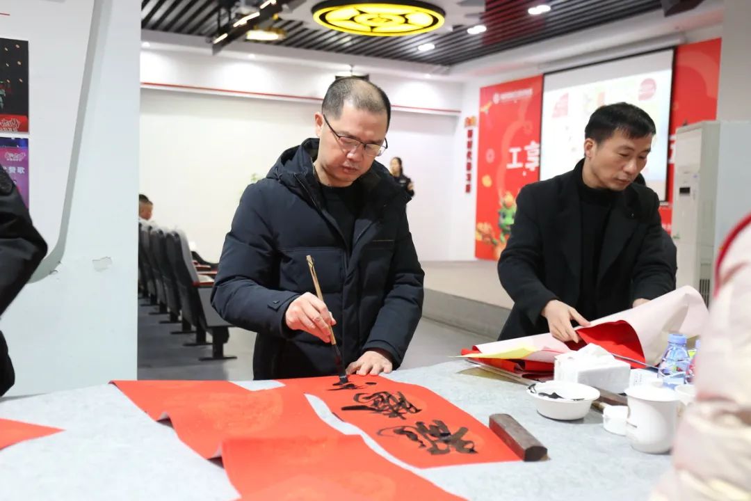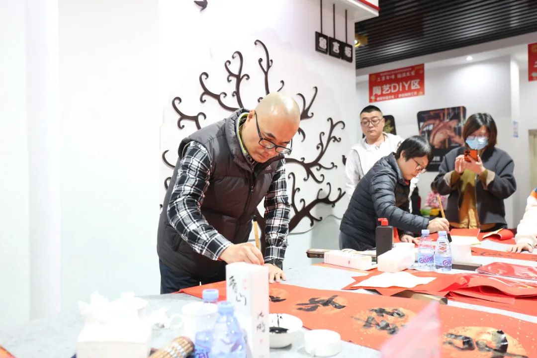 除了写春联活动外,现场还设置了陶艺体验区、猜灯谜区、灯笼DIY和纸浆画区、套圈圈游戏区等多个互动体验区域。这些活动极具地方文化特色,内容丰富多彩的活动吸引了众多职工和商家的参与,大家纷纷沉浸在欢乐祥和的节日氛围中。