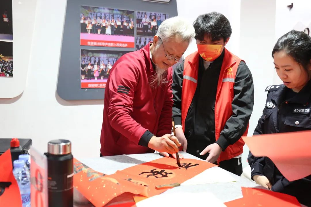 1.中国书法家协会会员,泉州市书协副主席,晋江市文联副主席,晋江市书协主席——张聪明;2.中国书法家协会会员,福建省书法家协会会员,晋江市历史文化研究总会顾问——陈清岚;3.福建省书法家协会会员、晋江市书画院院士、晋江市书法家协会兼合式党支部委员——尤俊锋4.福建省书法家协会会员 ,晋江市书协理事——吴佩山。5.厦门大学书法硕士研究生,中国书法家协会会员,泉州市书法家协会理事,晋江市书协理事——施溢滢;6.中国书法家协会会员、泉州市书法家协会常务理事、晋江市书协兼合式党支部副书记——许春颖;7.福建省书法家协会会员,晋江市书协理事——郑文尚;8.上海市书法家协会会员,上海市医务工会书画协会主席,上海浦东道教书画院院长——张翔宇;9.福建省书法家协会会员,晋江市书法家协会理事——叶金水。9位书法家到场为大家书赠春联