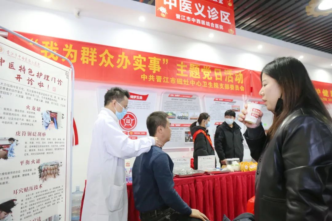 值得一提的是,此次活动还得到了晋江市中西医结合医院的大力支持。施水液副院长和党支部副书记吴蓉雪带领护理门诊医师到现场为职工提供了免费诊疗、健康咨询和科普养生知识宣讲。这一举措不仅体现了医院对职工的关爱,也让大家在欢乐祥和的节日氛围中感受到了健康的福祉。义诊现场刮痧、耳穴压豆、穴位贴等服务受到广大商家和职工追捧,现场免费赠饮的养生热茶,为大家带来了冬日里的温暖。文中部分表情、图片、字体、视频等素材来源于互联网及其他公众平台,部分图片由商家提供,其版权归原作者所有。如涉及侵权请予以告知,将在24小时内删除相关内容。