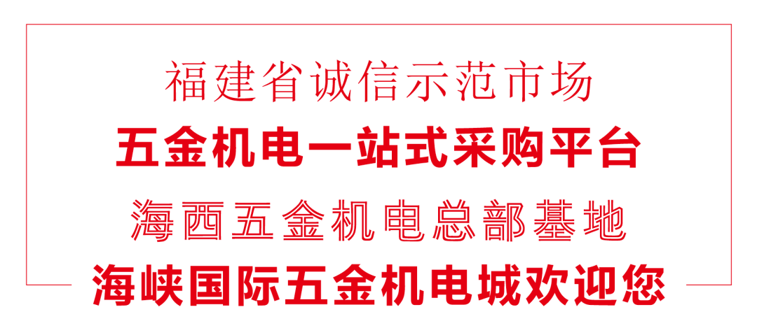 目前,项目完成一、二、三期的建设,五期墅式商铺也即将交房。市场已入驻商家1000多户,品牌几万个,产品几十万种。我们每年投入巨资培育、推广市场。在区位、设计、物流配送、商业集群等核心优势加持下,市场快速繁荣兴旺、商家生意红火,物业价值逐年攀升,已经成海西最繁荣、有影响力的五金机电城专业市场。十年如一日的口碑沉淀,成就了海峡国际五金机电城良好信誉,市场荣膺“福建省诚信示范市场”、“泉州市放心消费示范商圈”、“全国文明经营诚信示范市场”、“全国五金机电专业领军市场”、“全国最具投资潜力市场”等十多项荣誉!