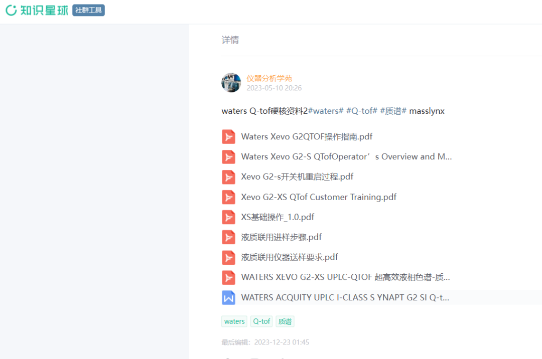经过近200个日日夜夜的积累,仪器分析学苑知识星球已经囊括了超过100+份产品技术文档,视频,经验分享,行业报告等等。