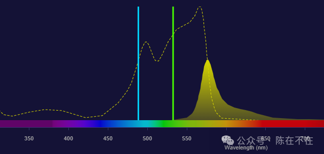 每种荧光化合物都有特定的吸收光谱和发射光谱。“谱”意味着有范围,有峰有谷。