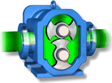 双螺杆泵与齿轮泵十分相似,一个螺杆转动,带动另一个螺杆,液体被拦截在啮合室内,沿杆轴方向推进,然后被挤向中央排出。